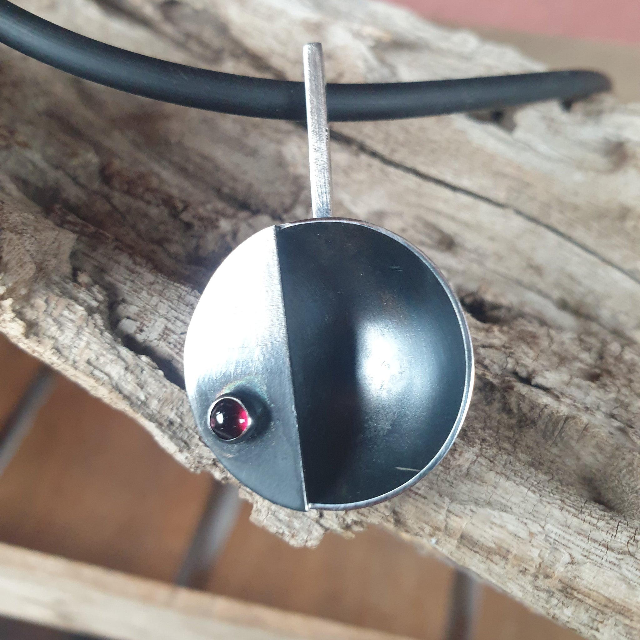 Mjesečeve mjene ogrlica je izrađena od recikliranog srebra. Duljina lančića iznosi oko 45 cm. Privjesak je duljine 45 mm, a na najširem dijelu mjesec iznosi 25 mm. Nakit s nošenjem postaje svjetliji i sjajniji. Budući da je nakit ručno izrađen, nije identičan prikazanom na fotografiji, već vrlo sličan. Kamen može biti crni spinel, crveni granat ili zeleni onix.