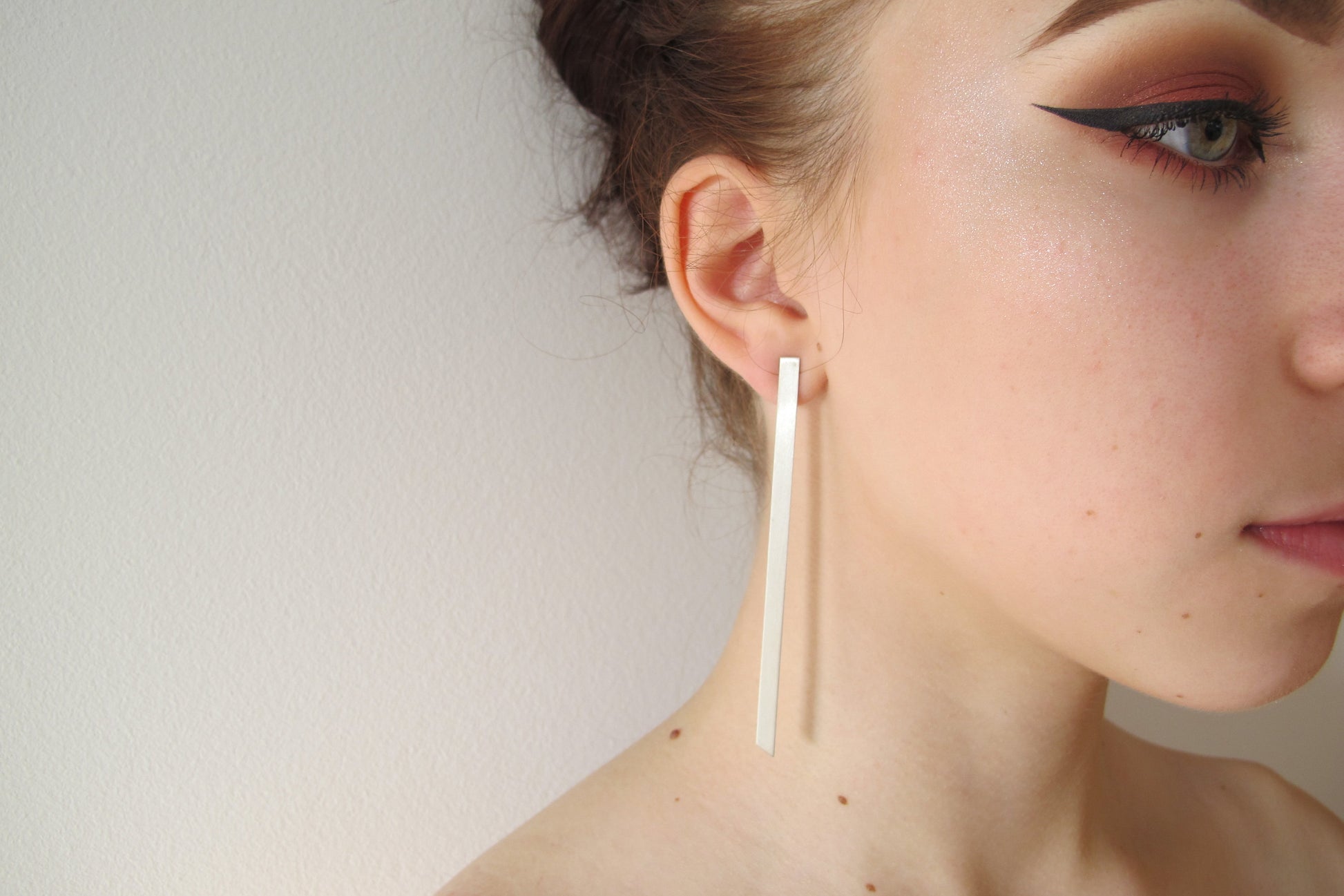 LONG line jednostavne Bar naušnice, duljine 95 mm. Izrađene su od recikliranog srebra, te patinirane kako prikazuje fotografija. Budući da su ručno izrađene, nisu identične prikazanom na fotografiji, već vrlo slične. Patina s vremenom postaje svjetlija. Budući da je nakit ručno izrađen, nije identičan prikazanom na fotografiji, već vrlo sličan.