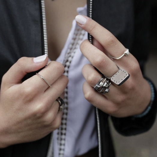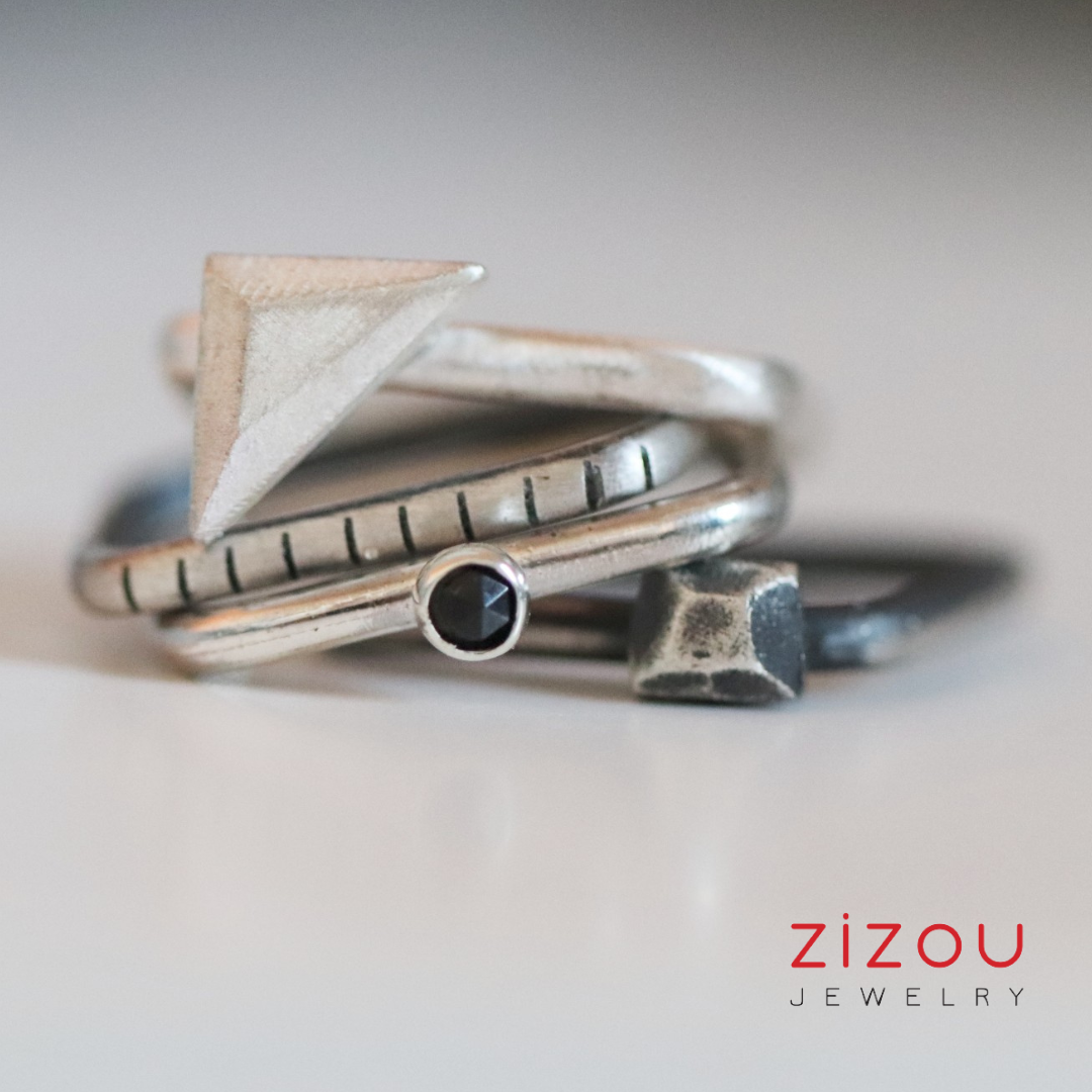 4U1 spinel I square je set kojeg čine 4 jedinstvena prstena, od kojih svaki prsten možete nositi zasebno ili kombinirati po želji. Dva su prstena patinirana, a dva imaju srebreni matirani finish. Kamen crni spinel. Prstenje s nošenjem postaje svjetlije i sjajnije. Budući da je nakit ručno izrađen, nije identičan prikazanom na fotografiji, već vrlo sličan.