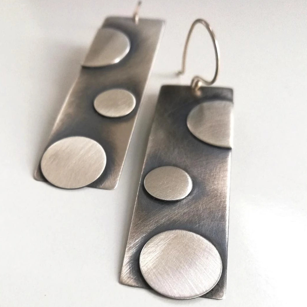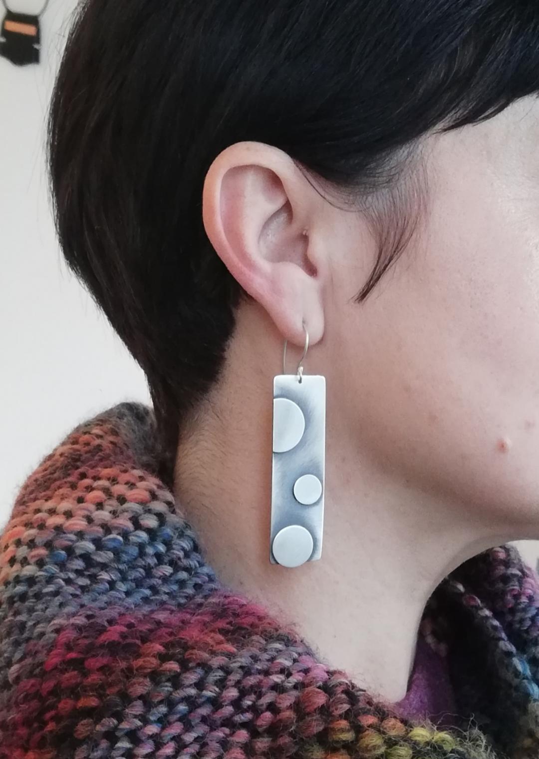 Točkice L su jednostavne geometrijske viseće naušnice, motivirane kvadratima i točkama, izrađene od srebra, patinirane, duljine cca 60 mm. Jednostavne su i elegantne, nosive za svaku priliku. Patina s vremenom postaje svjetlija i sjajnija. Naušnice su ručno izrađene, te je svaki par vrlo sličan, ali nikad u potpunosti identičan.