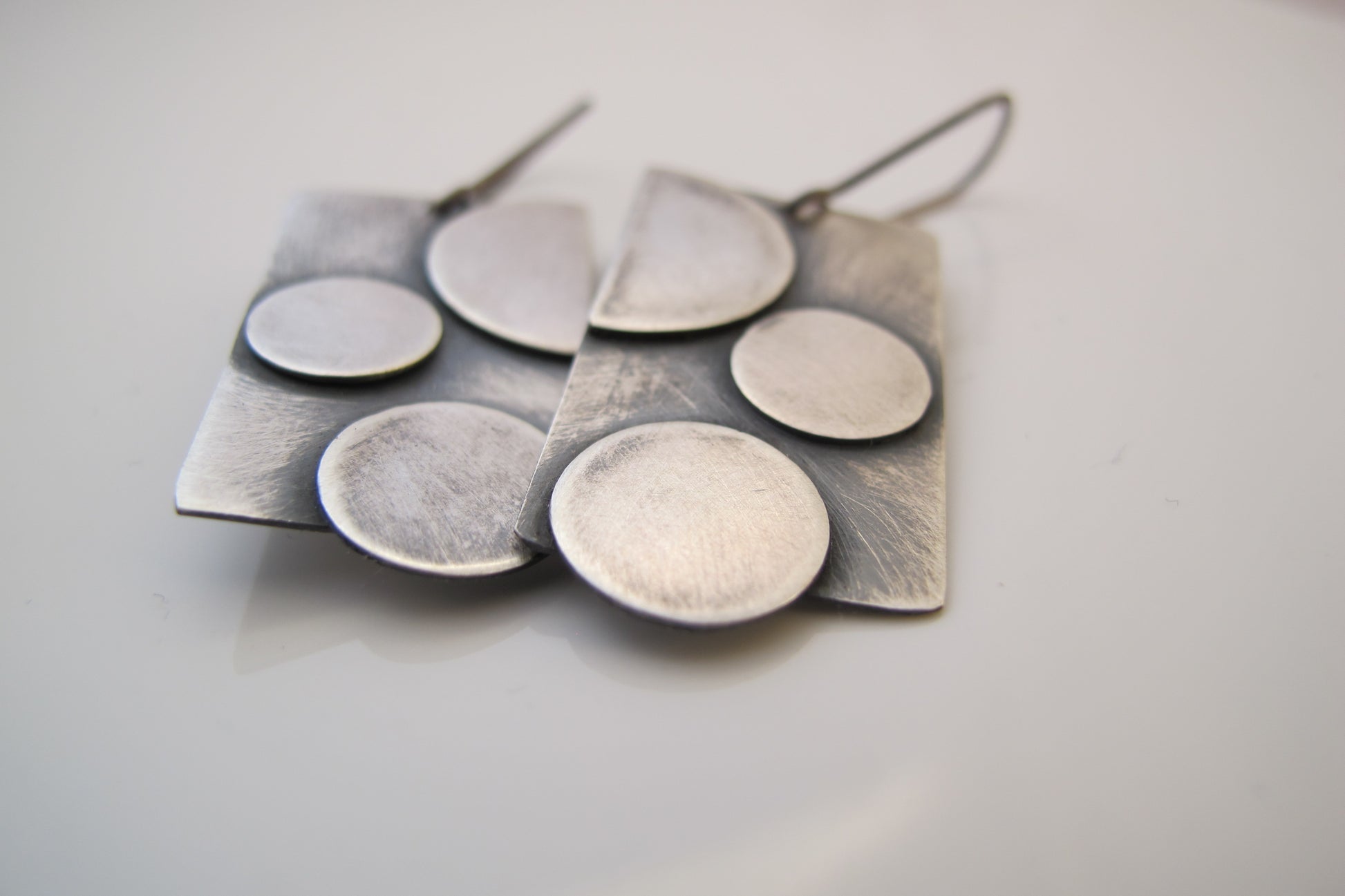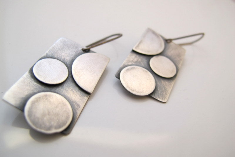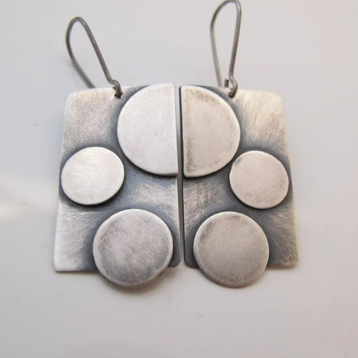 Točkice M su jednostavne geometrijske viseće naušnice, motivirane kvadratima i točkama, izrađene od srebra, patinirane, duljine cca 35 mm. Jednostavne su i elegantne, nosive za svaku priliku. Patina s vremenom postaje svjetlija i sjajnija. Naušnice su ručno izrađene, te je svaki par vrlo sličan, ali nikad u potpunosti identičan.
