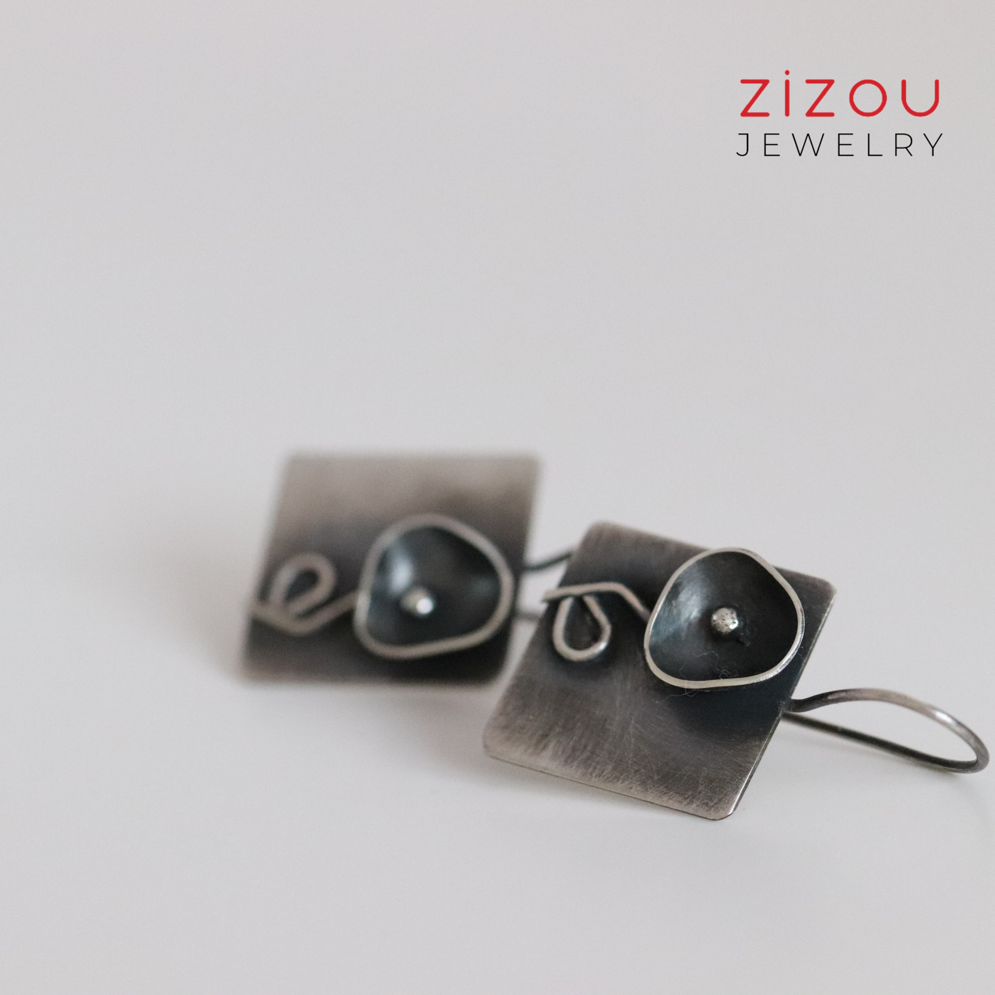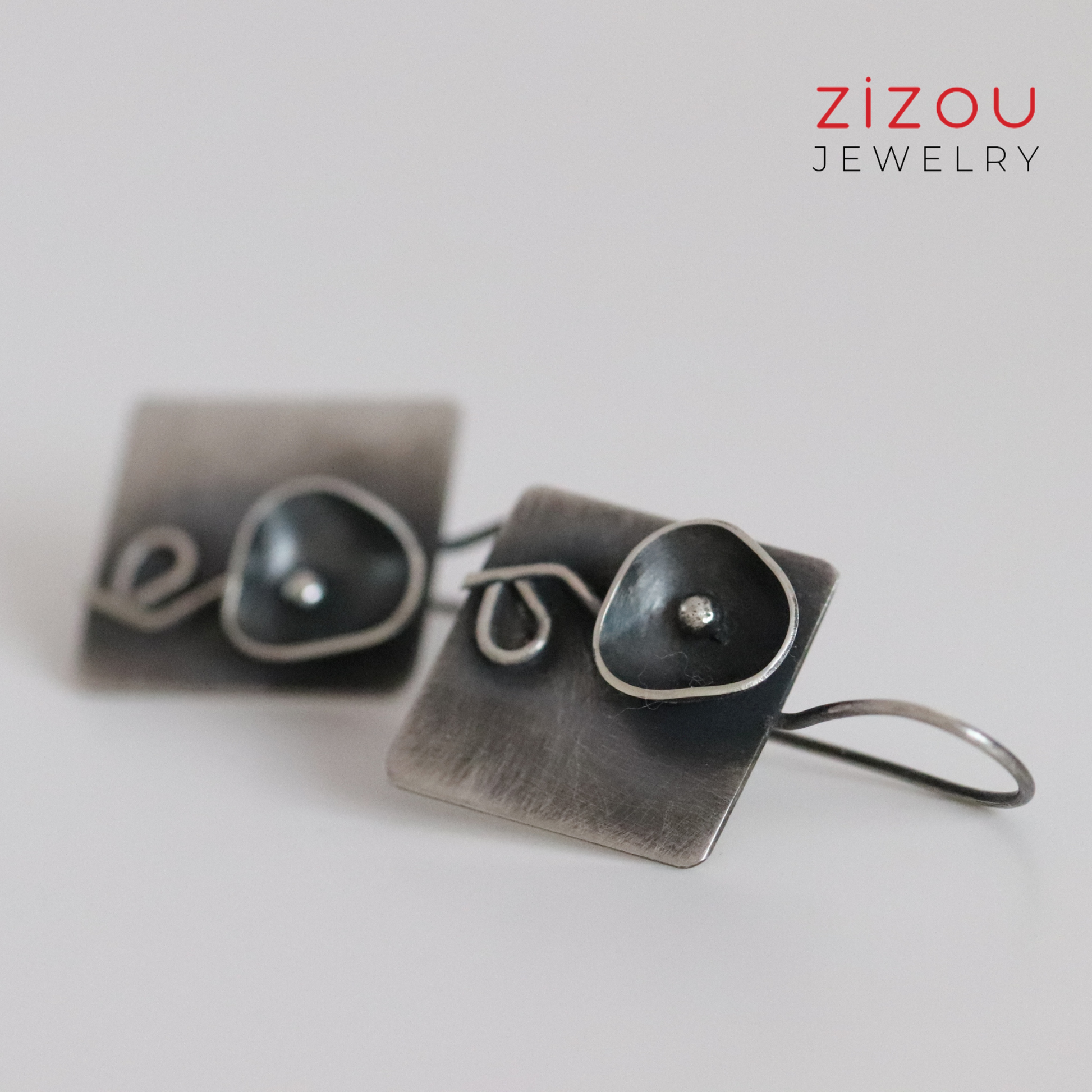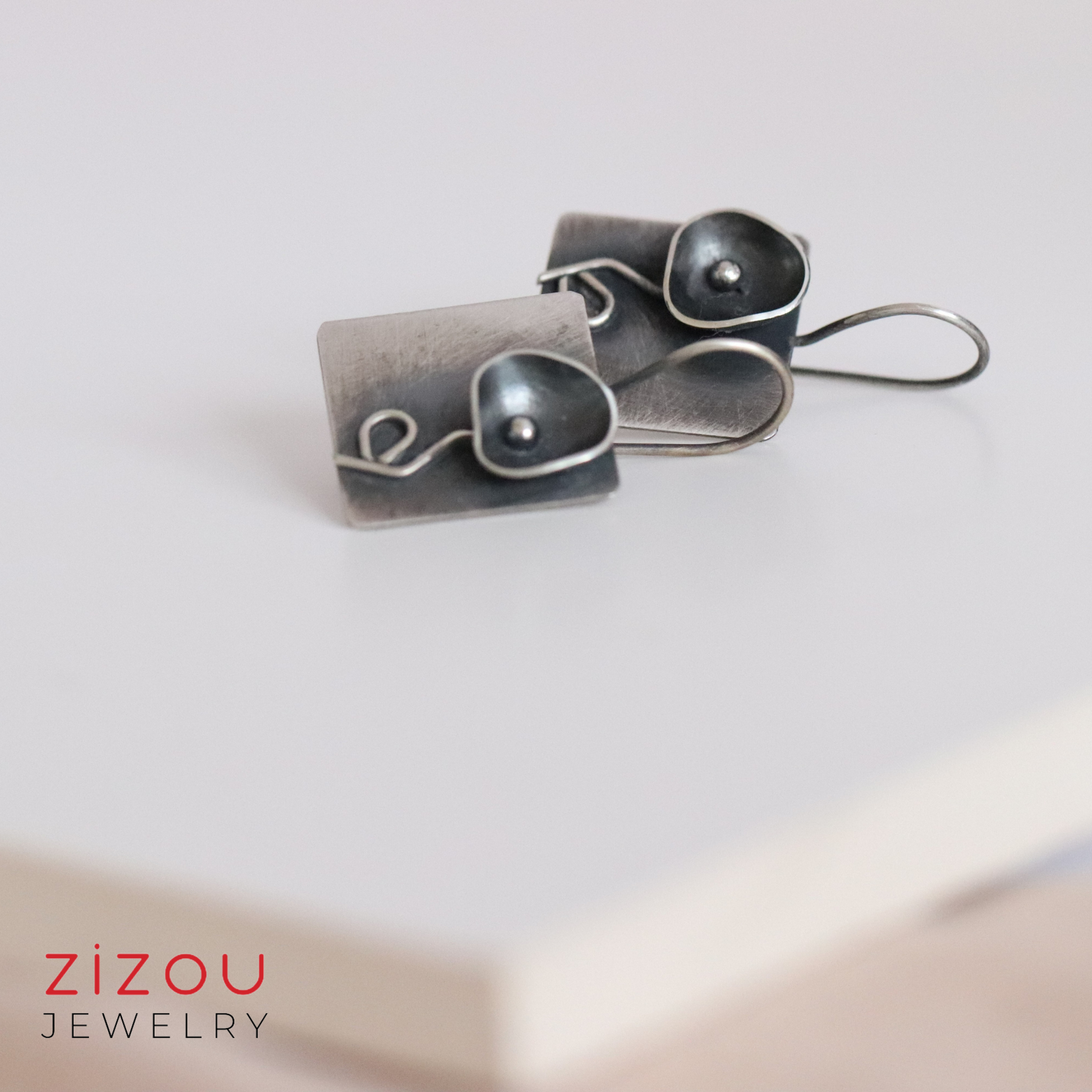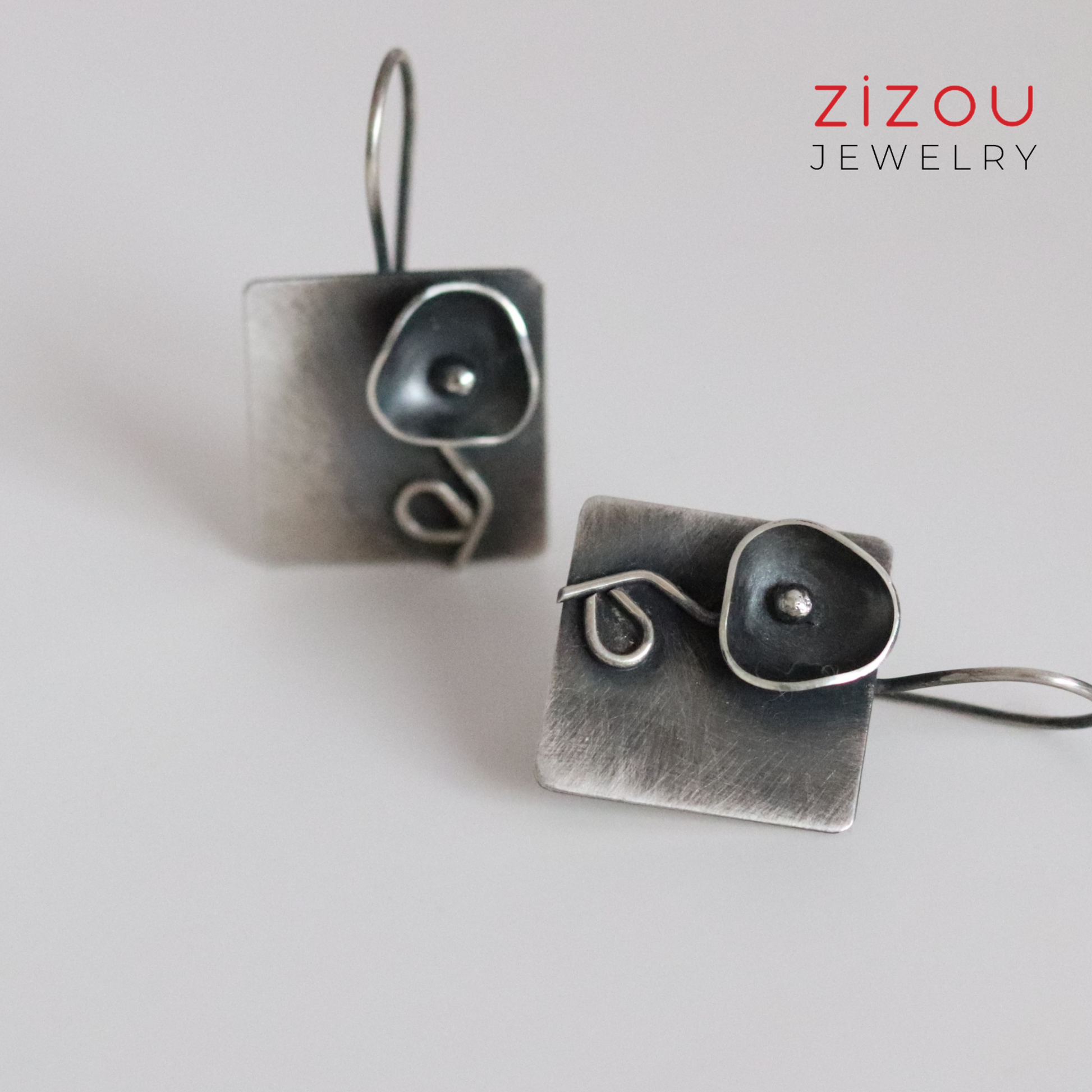 Crni cvijet naušnice izrađene su od srebra, patinirane, u dimenziji 18 x 18 mm. Nakit s nošenjem postaje svjetliji i sjajniji. Budući da je nakit ručno izrađen, nije identičan prikazanom na fotografiji, već vrlo sličan.