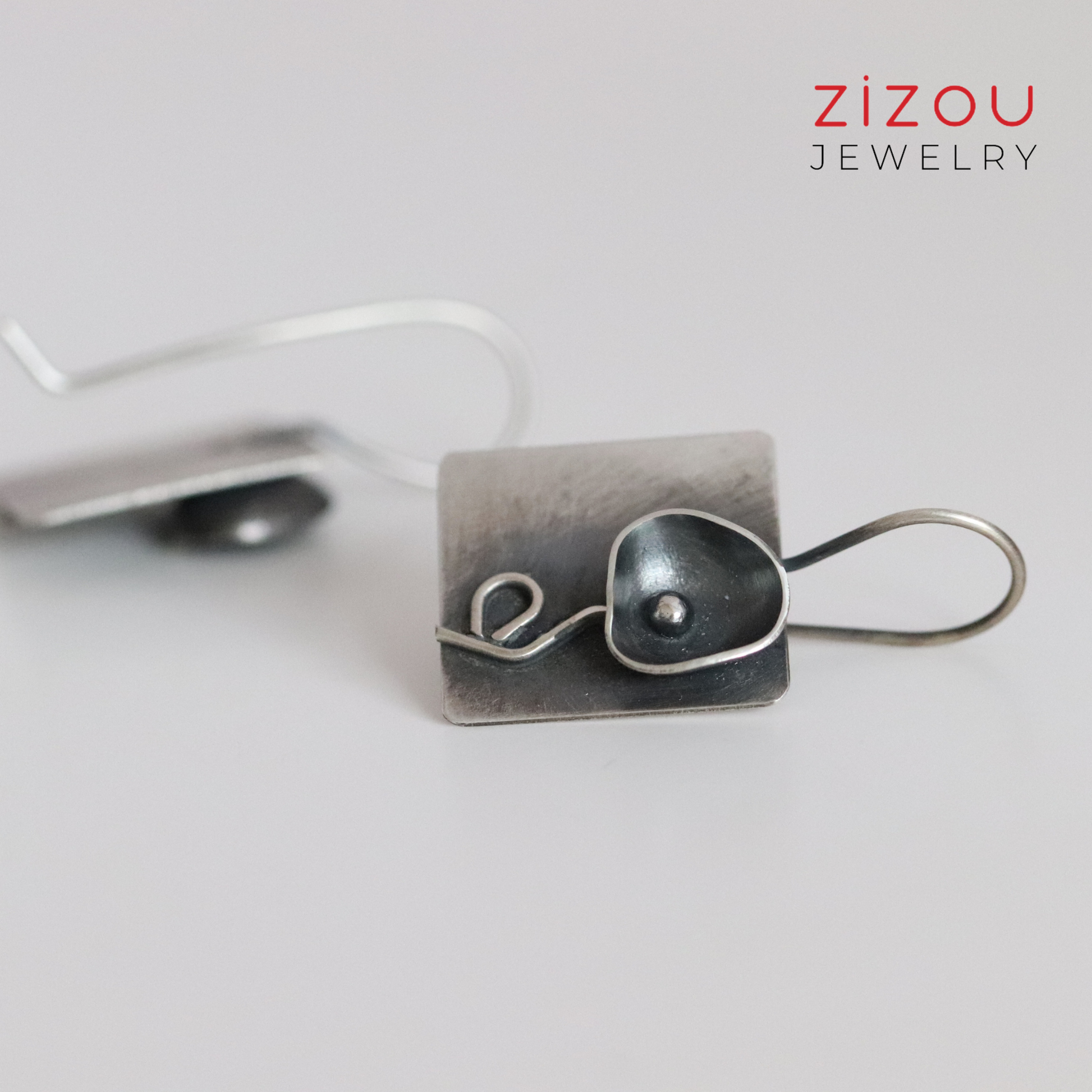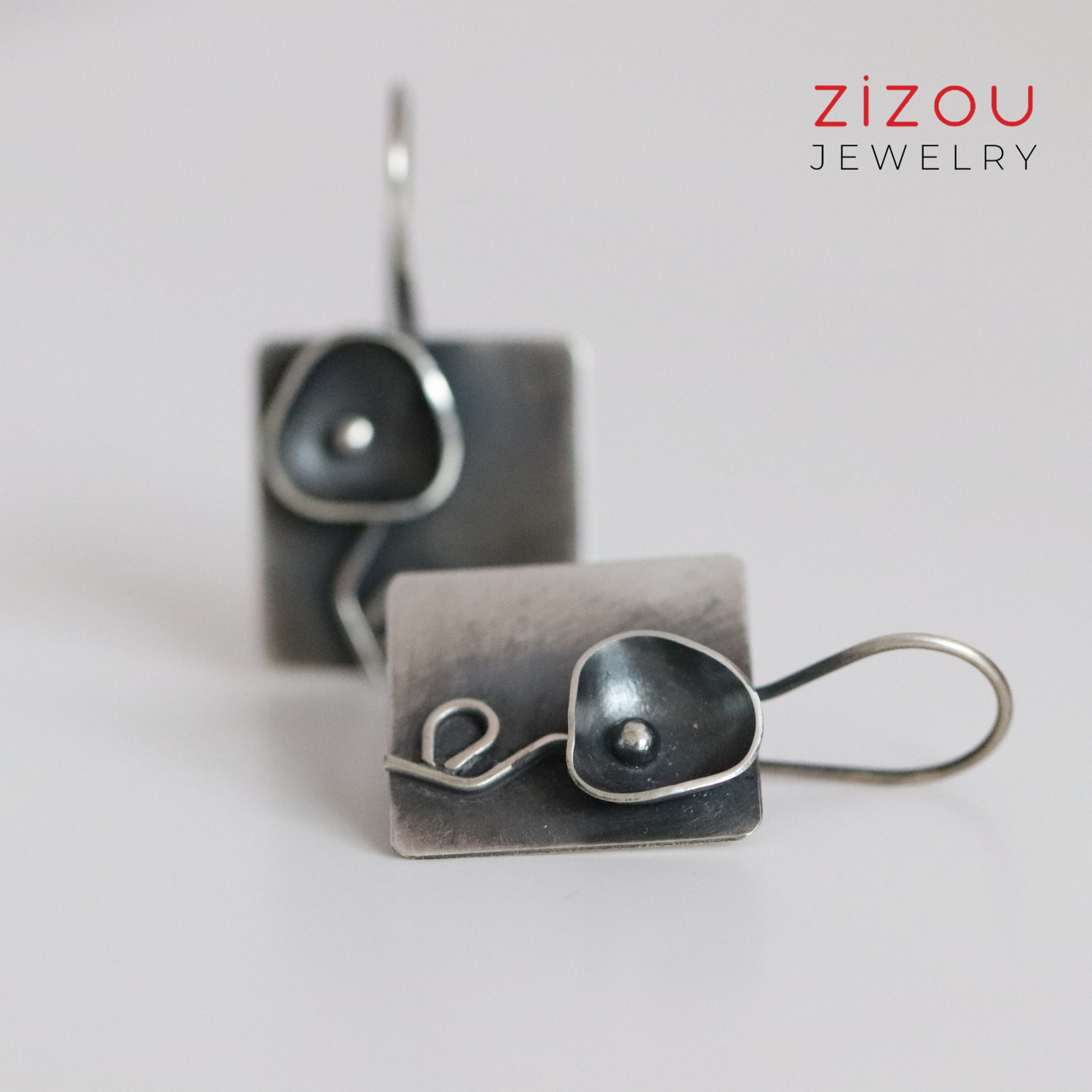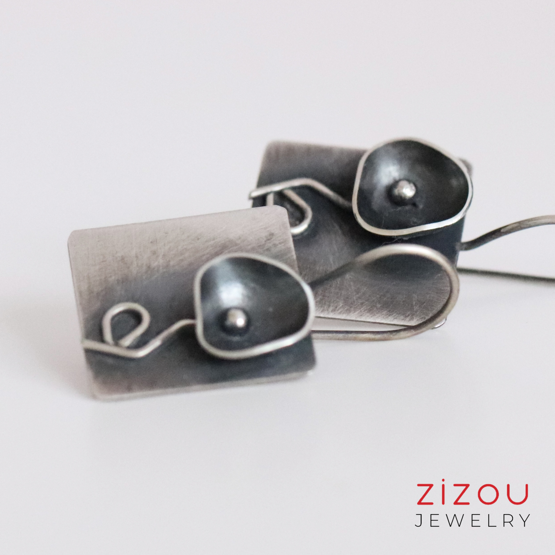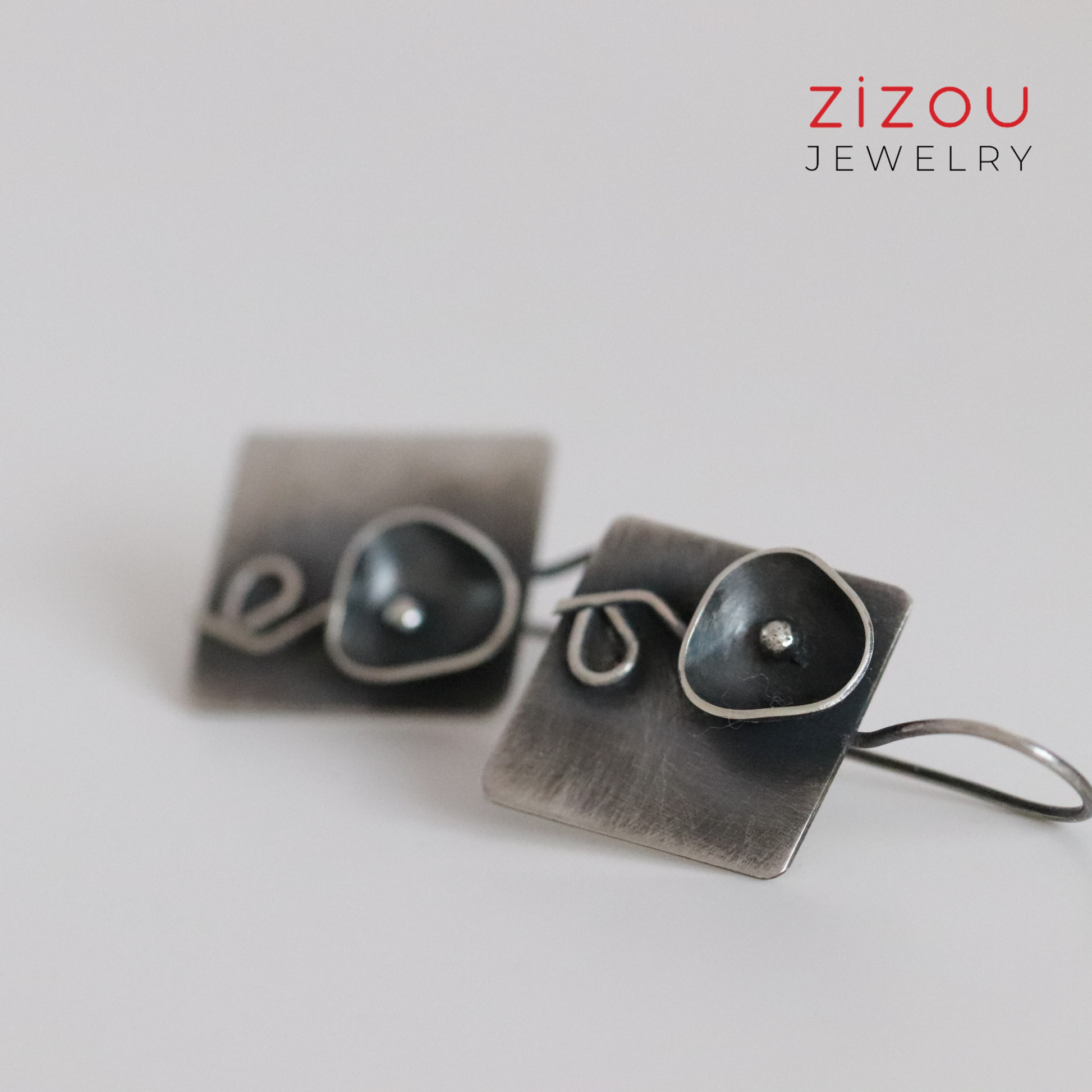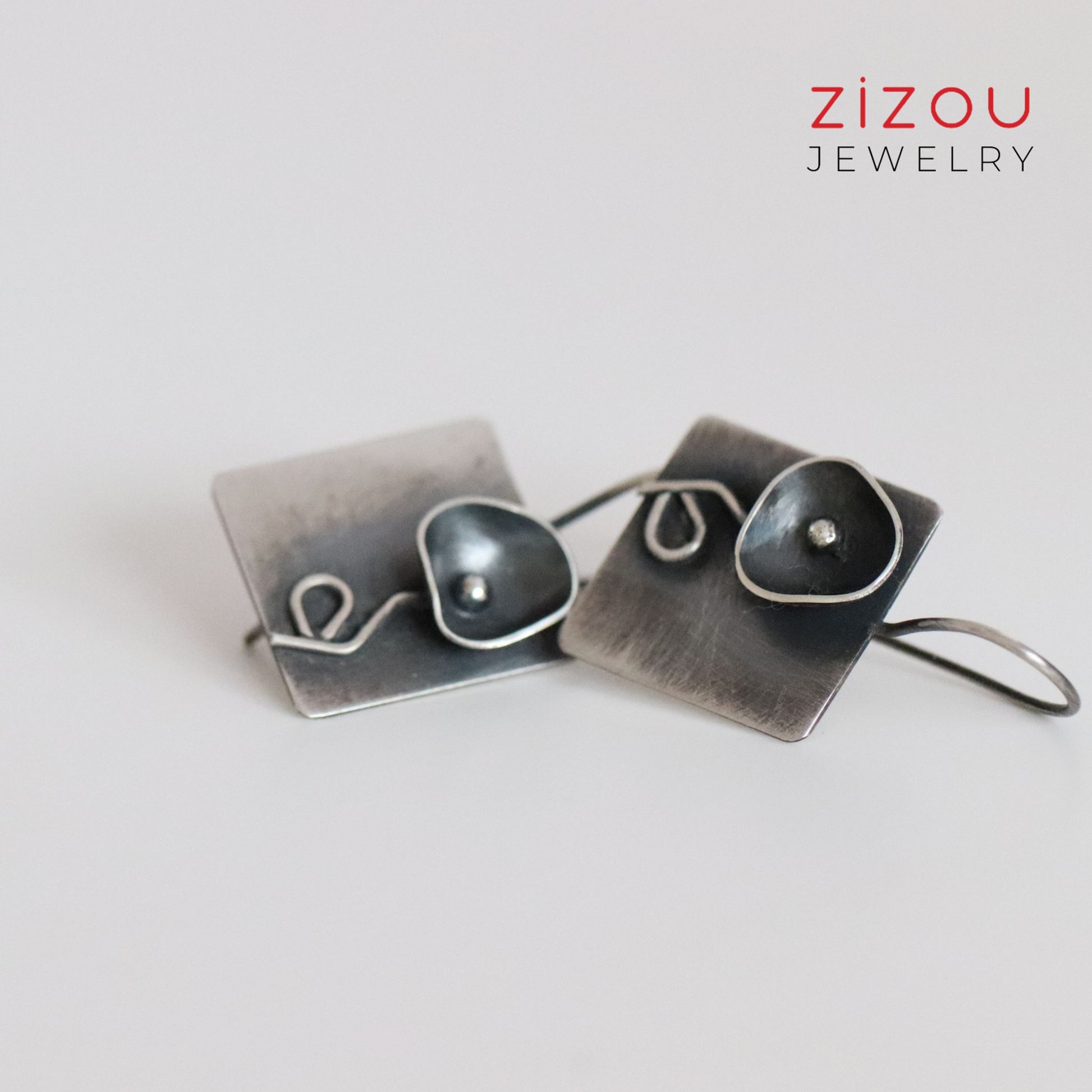 Crni cvijet naušnice izrađene su od srebra, patinirane, u dimenziji 18 x 18 mm. Nakit s nošenjem postaje svjetliji i sjajniji. Budući da je nakit ručno izrađen, nije identičan prikazanom na fotografiji, već vrlo sličan.