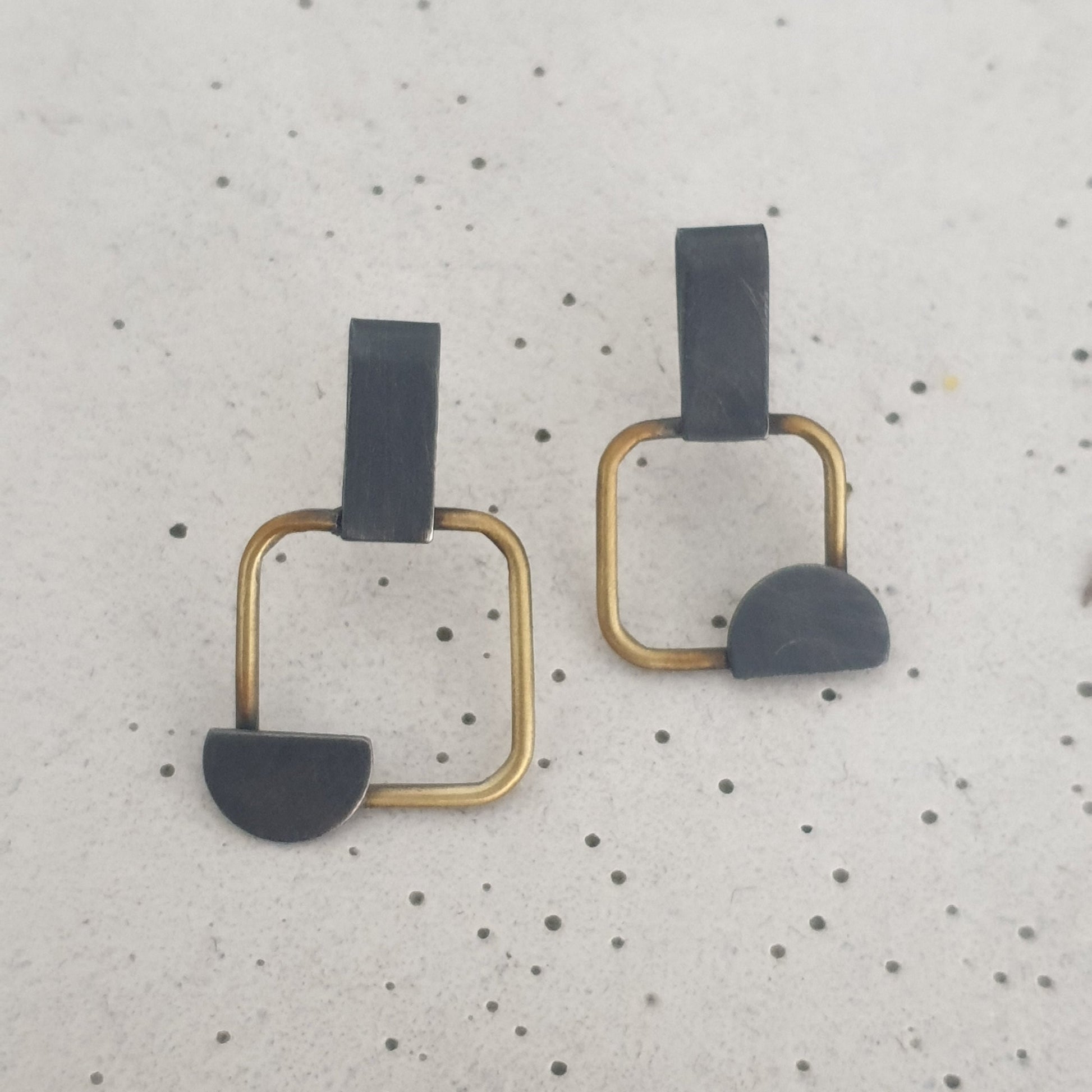 Black geometry su jednostavne geometrijske naušnice na leptirić, motivirane kvadratima i točkama, izrađene od srebra, i mjedi, duljine detalja cca 25- 35 mm. Jednostavne su i elegantne, nosive za svaku priliku. Naušnice su ručno izrađene, te je svaki par vrlo sličan, ali nikad u potpunosti identičan. Patina naglašava detalje na plšnoj formi.