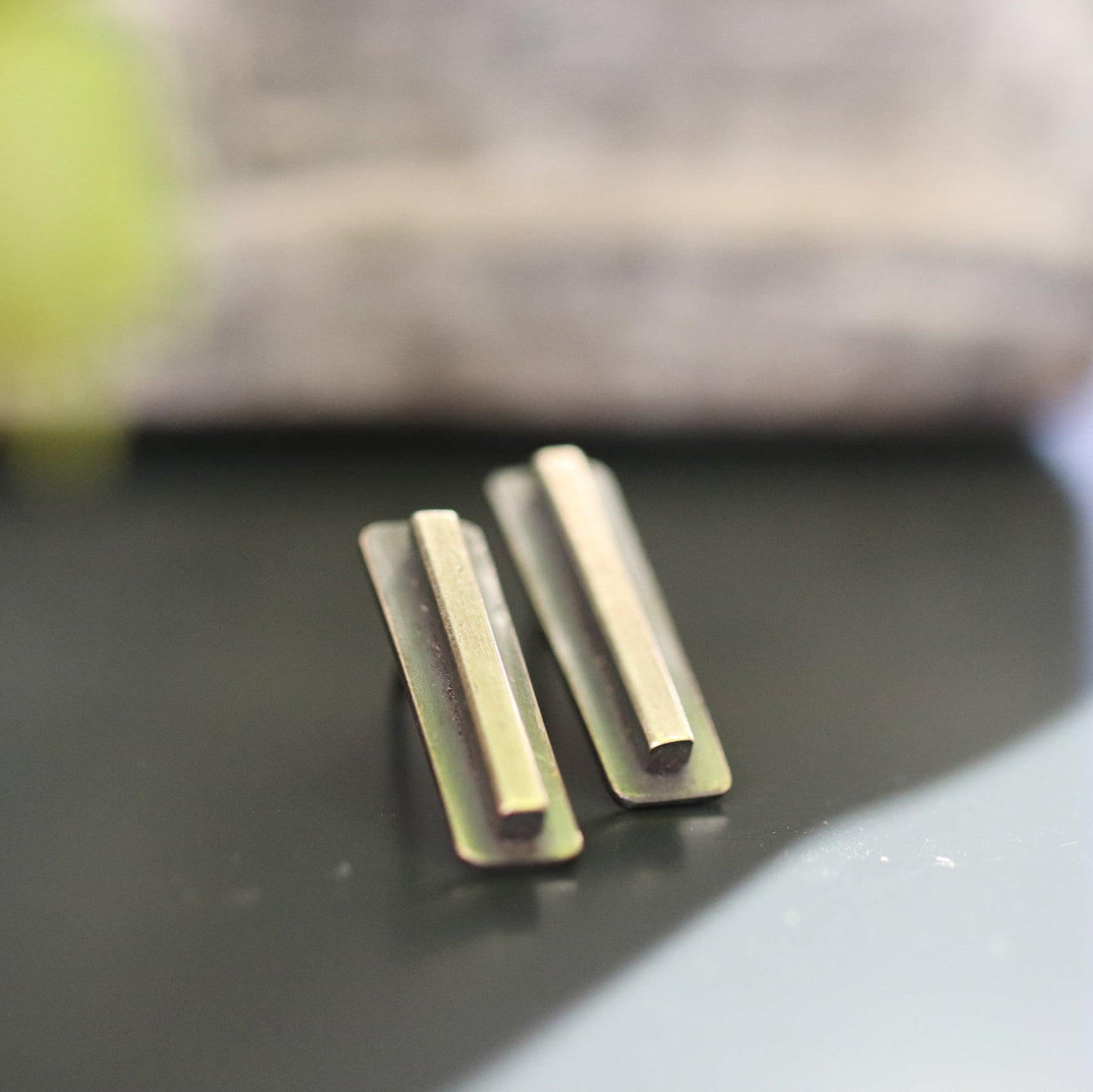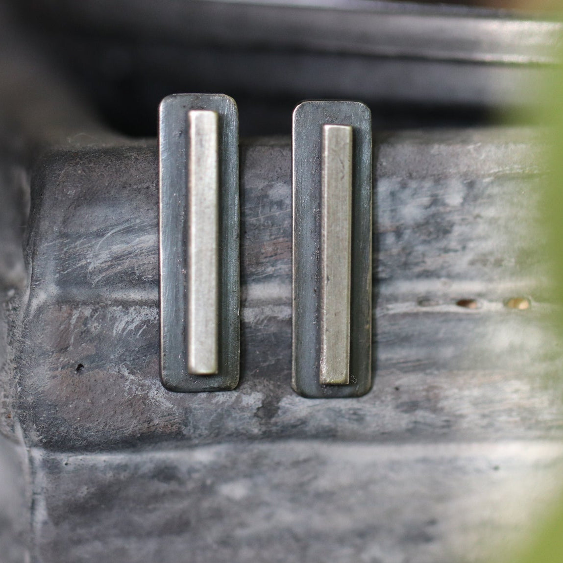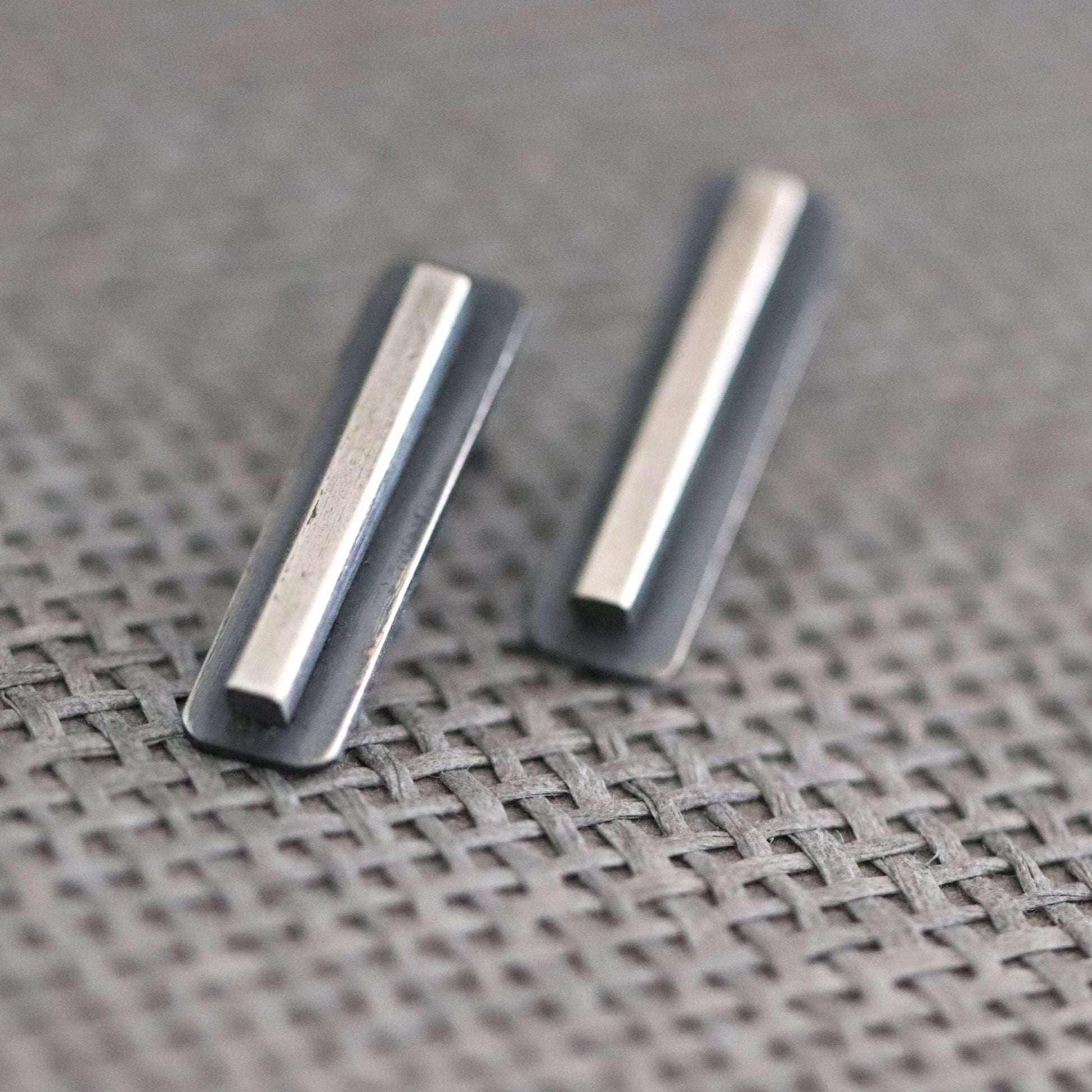 Jednostavne Bar naušnice, duljine 22 mm široko 6 mm. Izrađene su od recikliranog srebra, te patinirane kako prikazuje fotografija. Budući da su ručno izrađene, nisu identične prikazanom na fotografiji, već vrlo slične. Patina s vremenom postaje svjetlija. Budući da je nakit ručno izrađen, nije identičan prikazanom na fotografiji, već vrlo sličan.