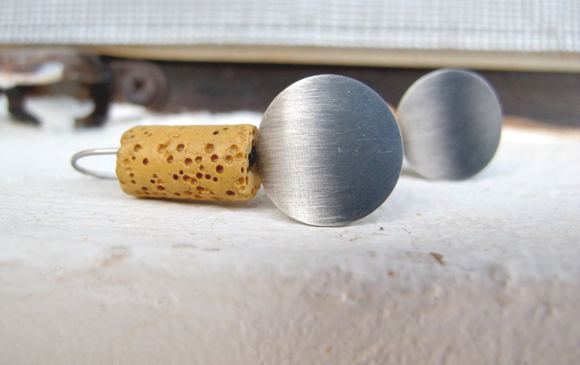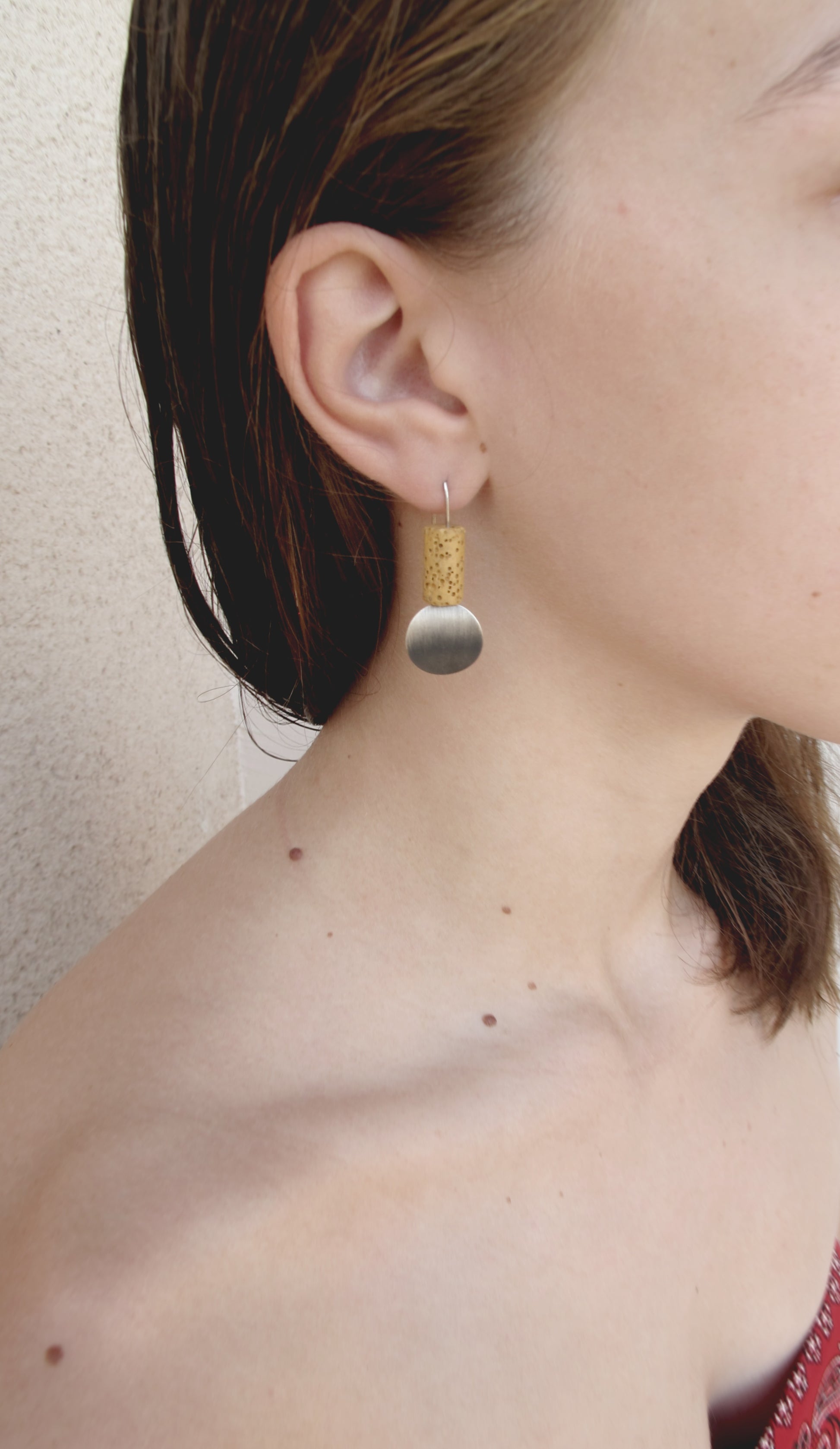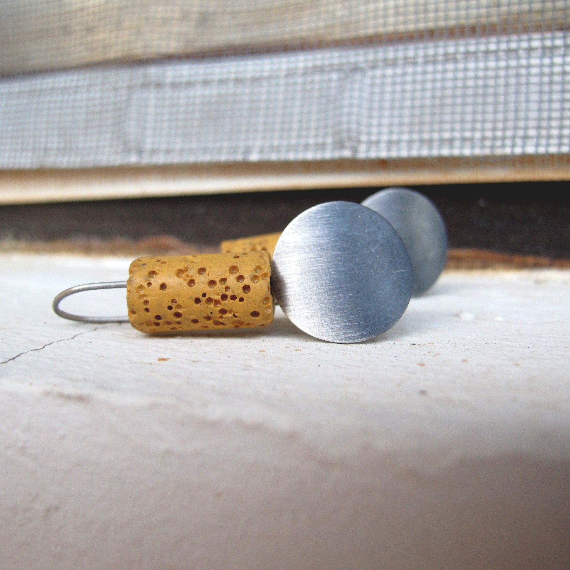 Geometric day Yellow! su naušnice duljine 50 mm, izrađene od recikliranog patiniranog srebra s ombre efektom i lave. Budući da su ručno izrađene, nisu identične prikazanom na fotografiji, već vrlo slične. Patina s vremenom postaje svjetlija.