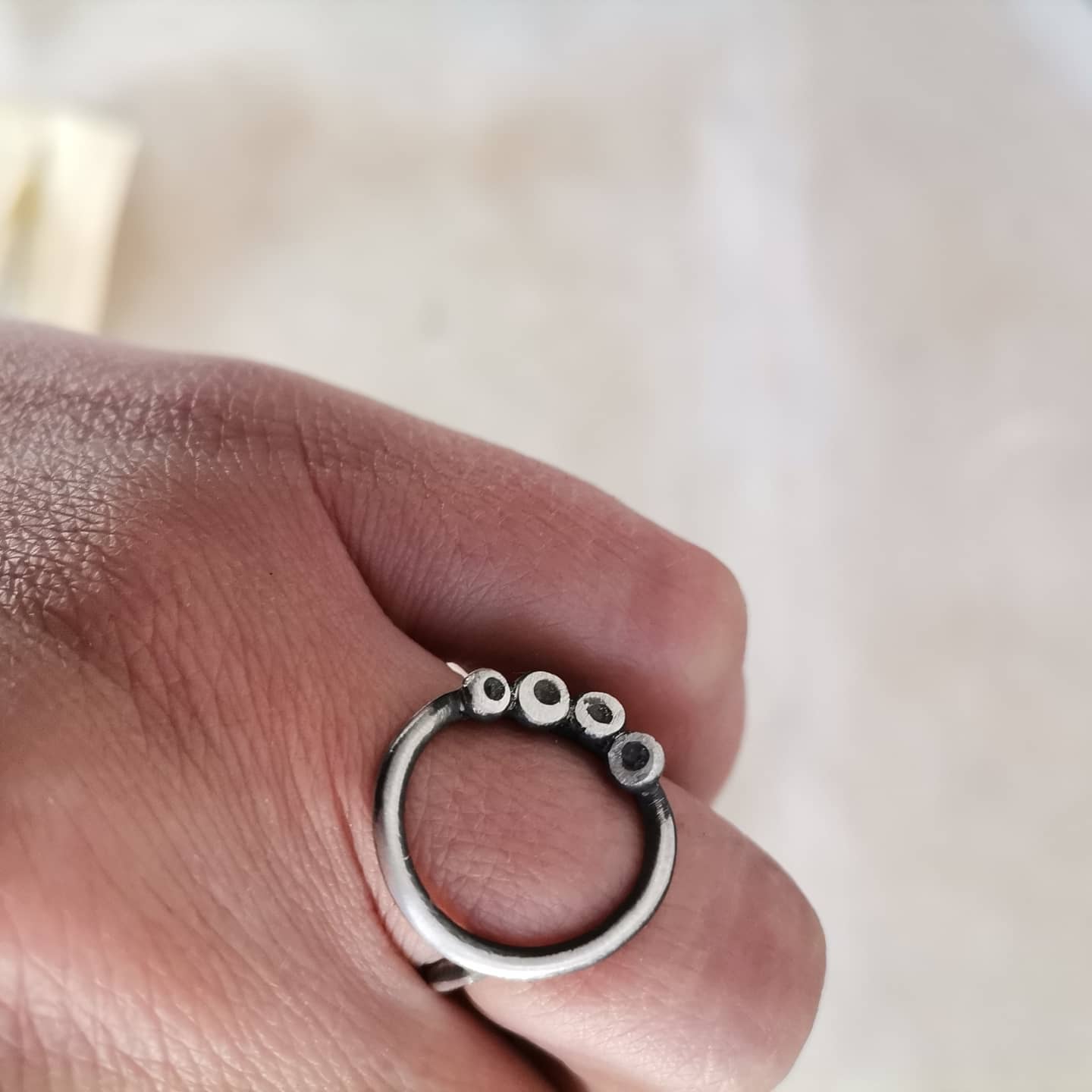 BuBBles je jednostavan prsten izrađen od recikliranog srebra, nosiv u svim prilikama. Budući da je prsten ručno izrađen, nije identičan prikazanom na fotografiji, već vrlo sličan. Prsten je dodatno patiniran te s nošenjem postaje svjetliji i sjajniji.