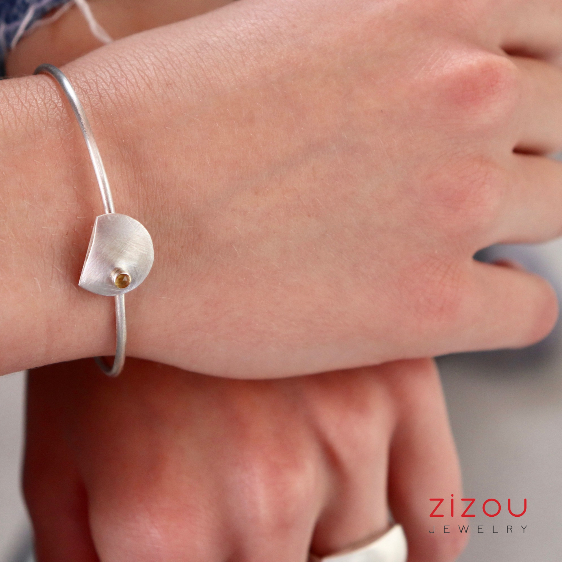 Full Moon citrin narukvica je dio moje nove kolekcije On the Moon, inspirirane mistikom mjeseca… Mjesec je romantičan, mjesec je sjajan i energičan, moćan i utjecajan... Sjaji sunčevim svjetlom i utječe na nas, na naše emocije, intuiciju, ponašanje... uzrokuje plimu i oseku... Preporučam ju u kombinaciji s prstenom Full Moon citrin i naušnicama Full Moon.