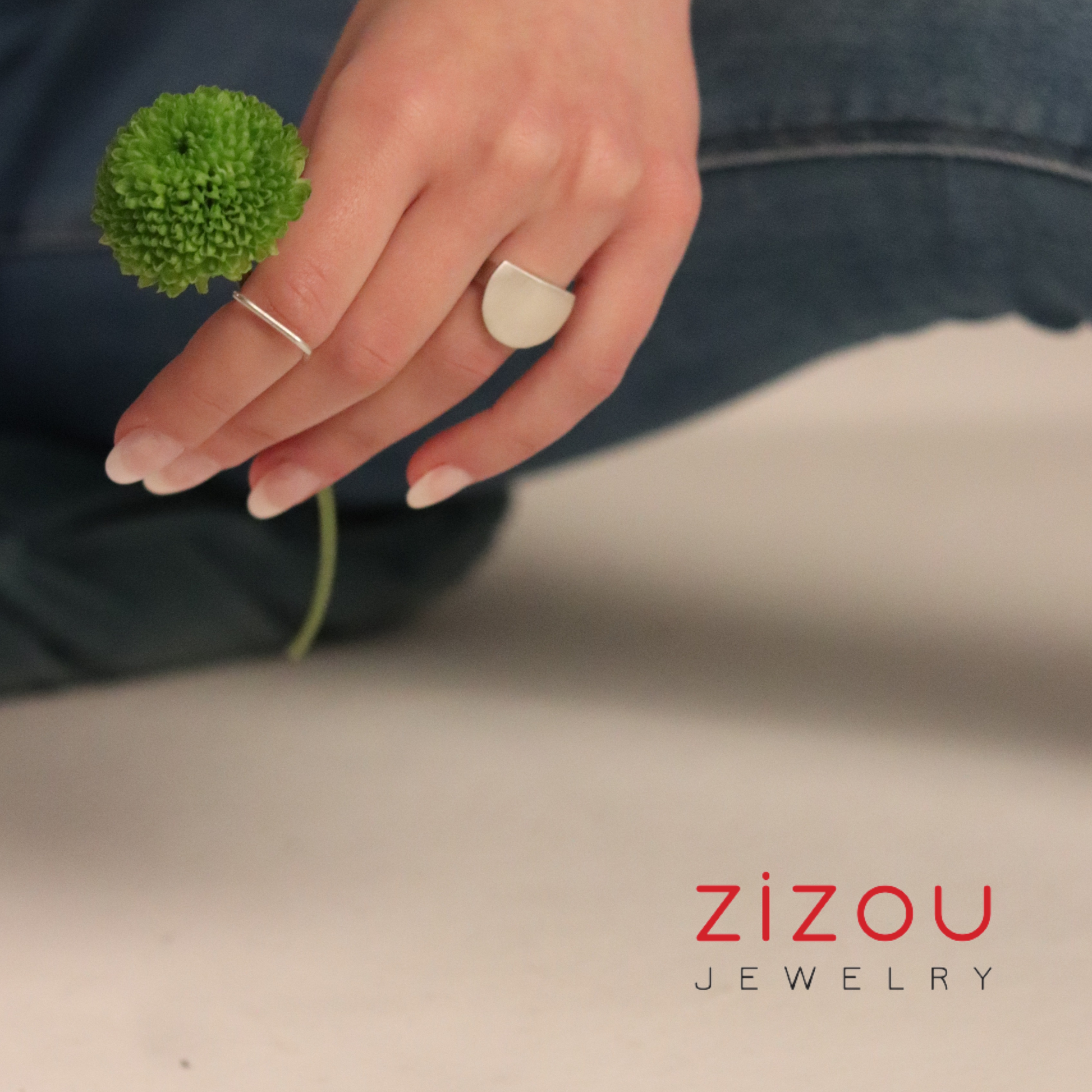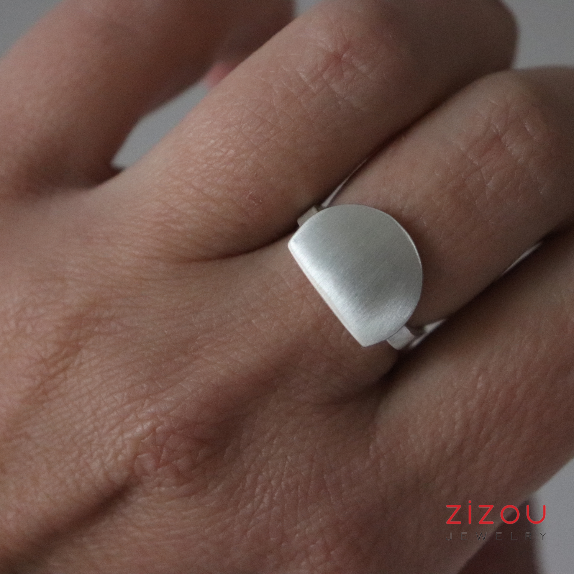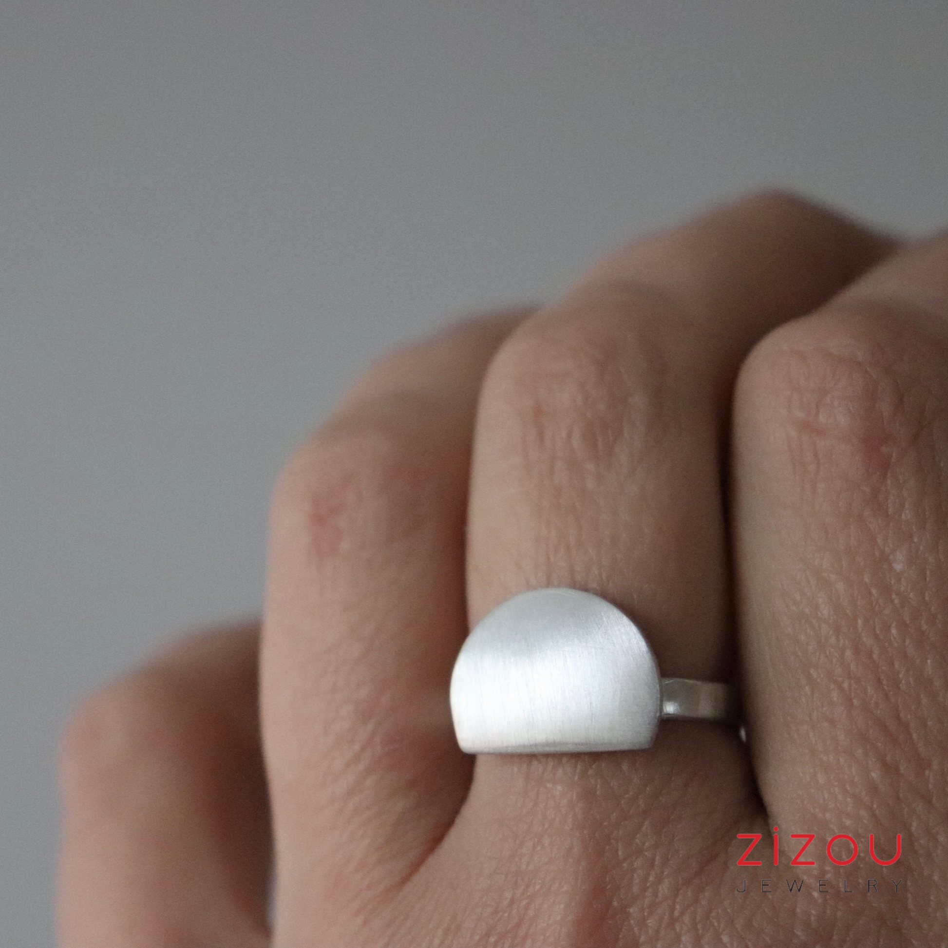 Full Moon S prsten izrađen je od recikliranog srebra. Duljina na najširem dijelu iznosi 16 mm, a širina ringa 3mm. Prstenje s nošenjem postaje svjetlije i sjajnije. Budući da je nakit ručno izrađen, nije identičan prikazanom na fotografiji, već vrlo sličan.