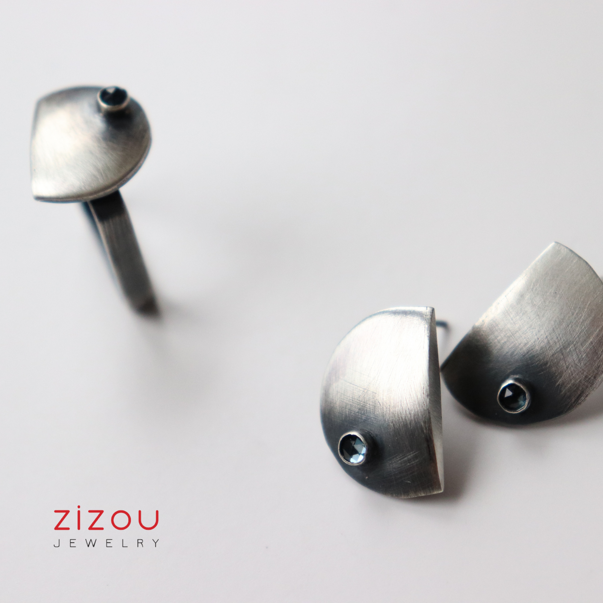 The Moon topaz naušnice su izrađene od recikliranog srebra, te dodatno patinirane. Krasi ih predivni poludragi kamen plavi topaz. Vjeruje se da topaz duguje svoju boju nebu, a dugo se vjerovalo da pomaže u očuvanju ljepote, mladosti i očuvanju topline obiteljskog ognjišta.. da donosi harmoniju.. Neka i nama The Moon topaz naušnice donesu ljepotu i harmoniju neba.. Duljina naušnica iznosi 19 mm, a širina na najširem dijelu 14 mm. Nakit s nošenjem postaje svjetliji i sjajniji. Budući da je nakit ručno izrađen, nije identičan prikazanom na fotografiji, već vrlo sličan.