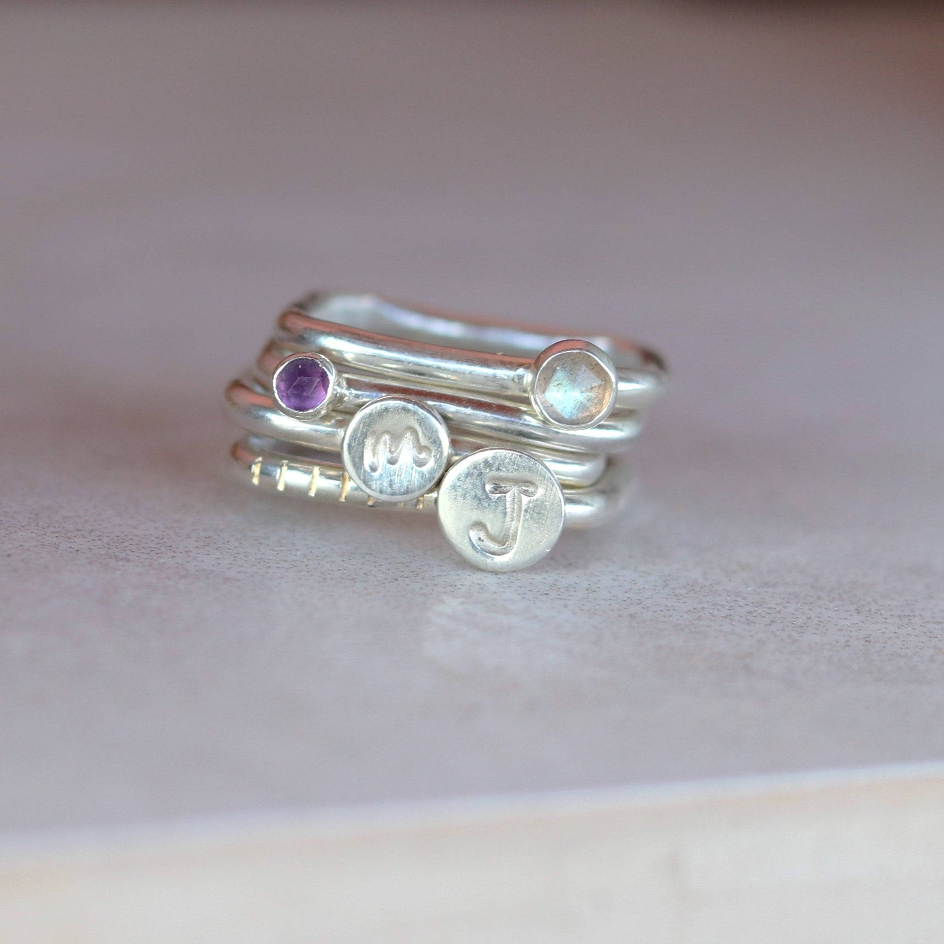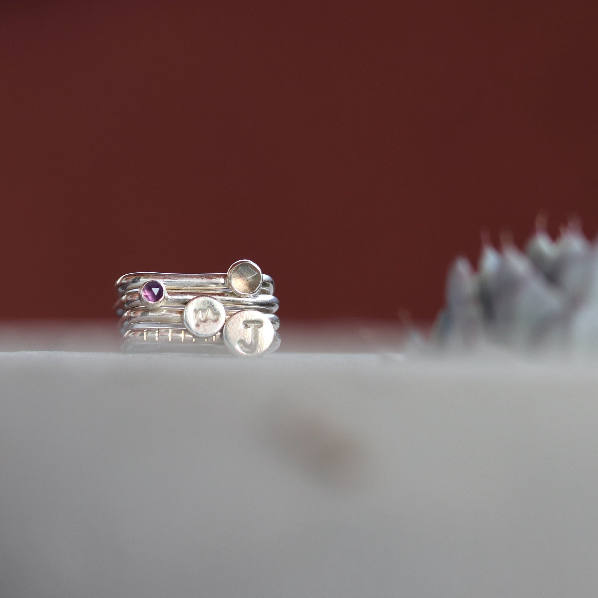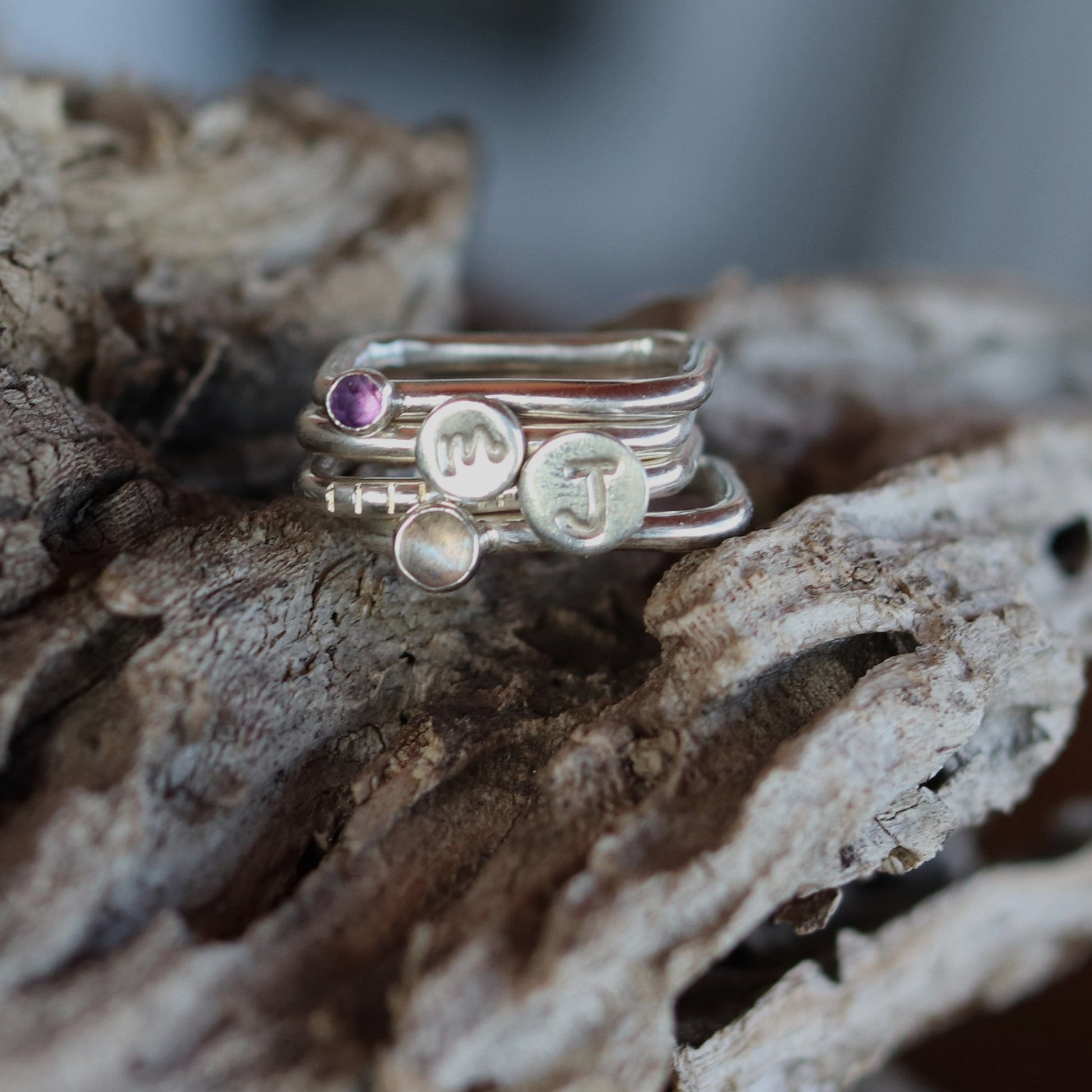4U1 personal square je set kojeg čine 4 jedinstvena prstena, od kojih svaki prsten možete nositi zasebno ili kombinirati po želji. Dva su prstena patinirana, a dva imaju srebrni sjajni finish. Kamen je labradorit i ametist. Prsten se može personalizirati s jednim ili dva inicijala ili odabirom kamena. Imajte na umu da su količine poludragih kamenja ograničene, te u koliko trenutno nemam na zalihi kontaktirati ću vas za odabir nekog drugog. Prstenje s nošenjem postaje svjetlije i sjajnije. Budući da je nakit ručno izrađen, nije identičan prikazanom na fotografiji, već vrlo sličan.
