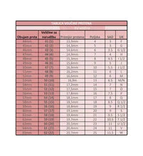 Veličine prstenja su izražene u američkim mjerama (npr: promjer 16 mm= US size 6, promjer 17 mm= US size 7).