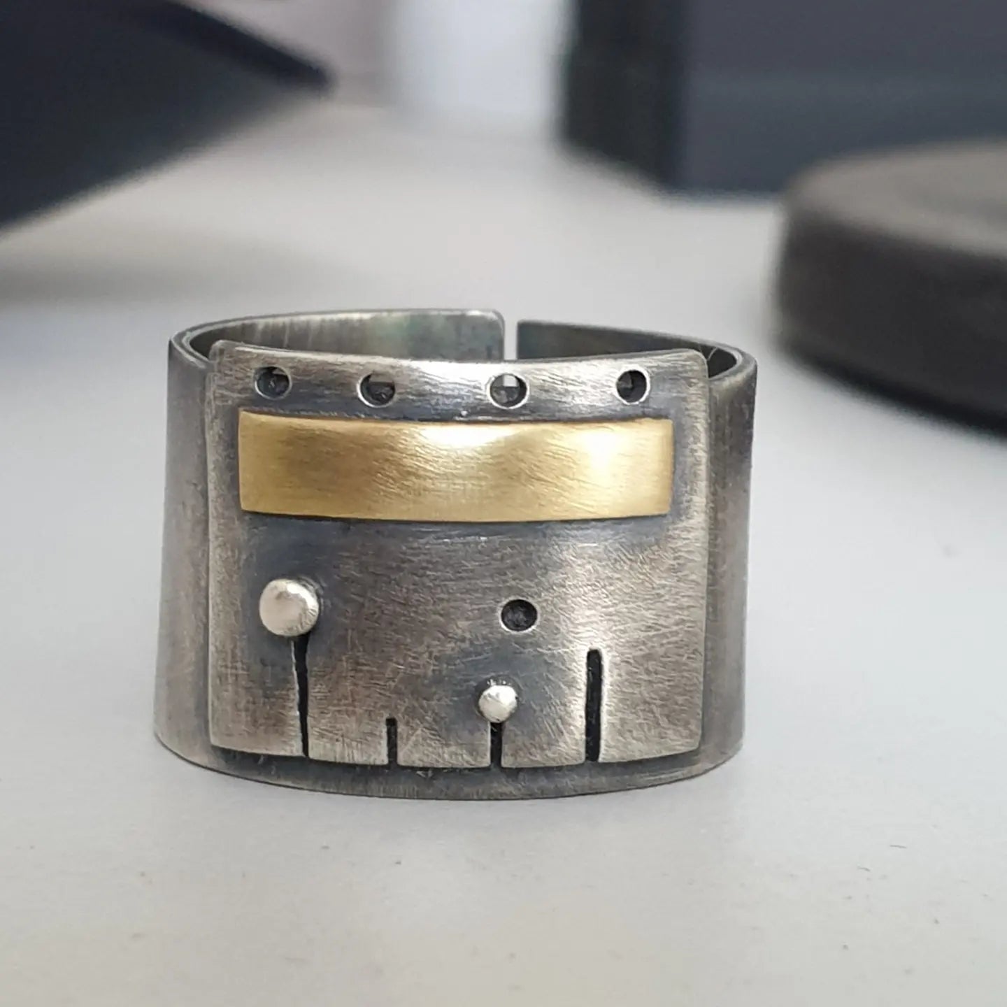 Prsten Nothing else matters jednostavan je i dominantan. Izrađen je od srebra, uz mjedeni detalj koji mu daje pomalo rustikalni izgled. Prsten je patiniran, širok 15 mm, no može se prilagoditi za jedan broj (krug nije puni). Prstenje s nošenjem postaje svjetlije i sjajnije. Budući da je nakit ručno izrađen, nije identičan prikazanom na fotografiji, već vrlo sličan.