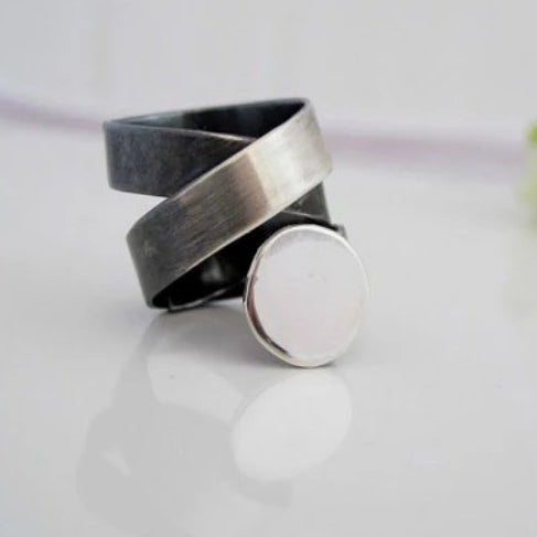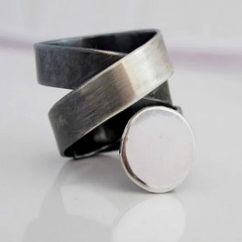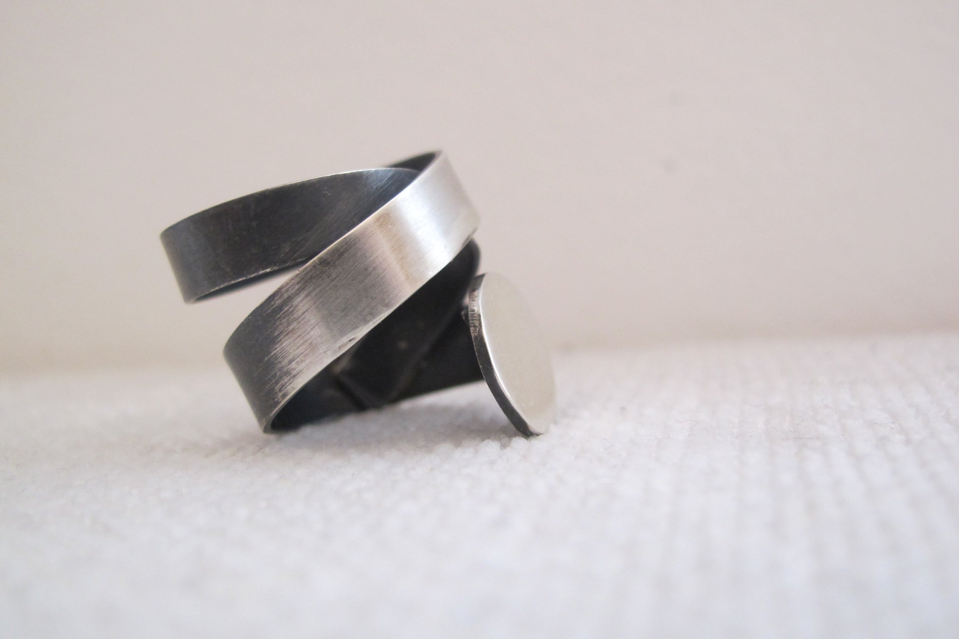 Tatoo krug je jednostavan, ali dominantan prsten izrađen od recikliranog srebra, patiniran. Dimenzija prstena na najduljoj strani iznosi do 17 mm, širina same trake iznosi cca 7 mm. Budući da je prsten ručno izrađen, nije identičan prikazanom na fotografiji, već vrlo sličan. Prstenje s nošenjem postaje svjetlije i sjajnije.