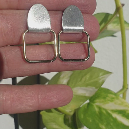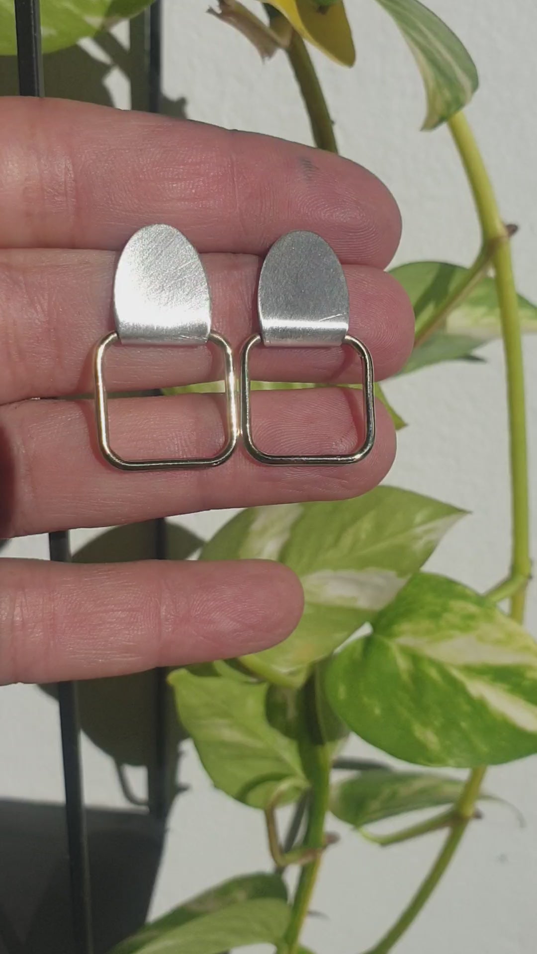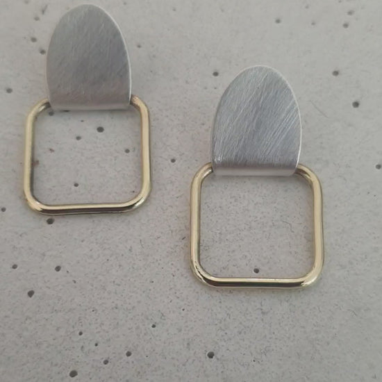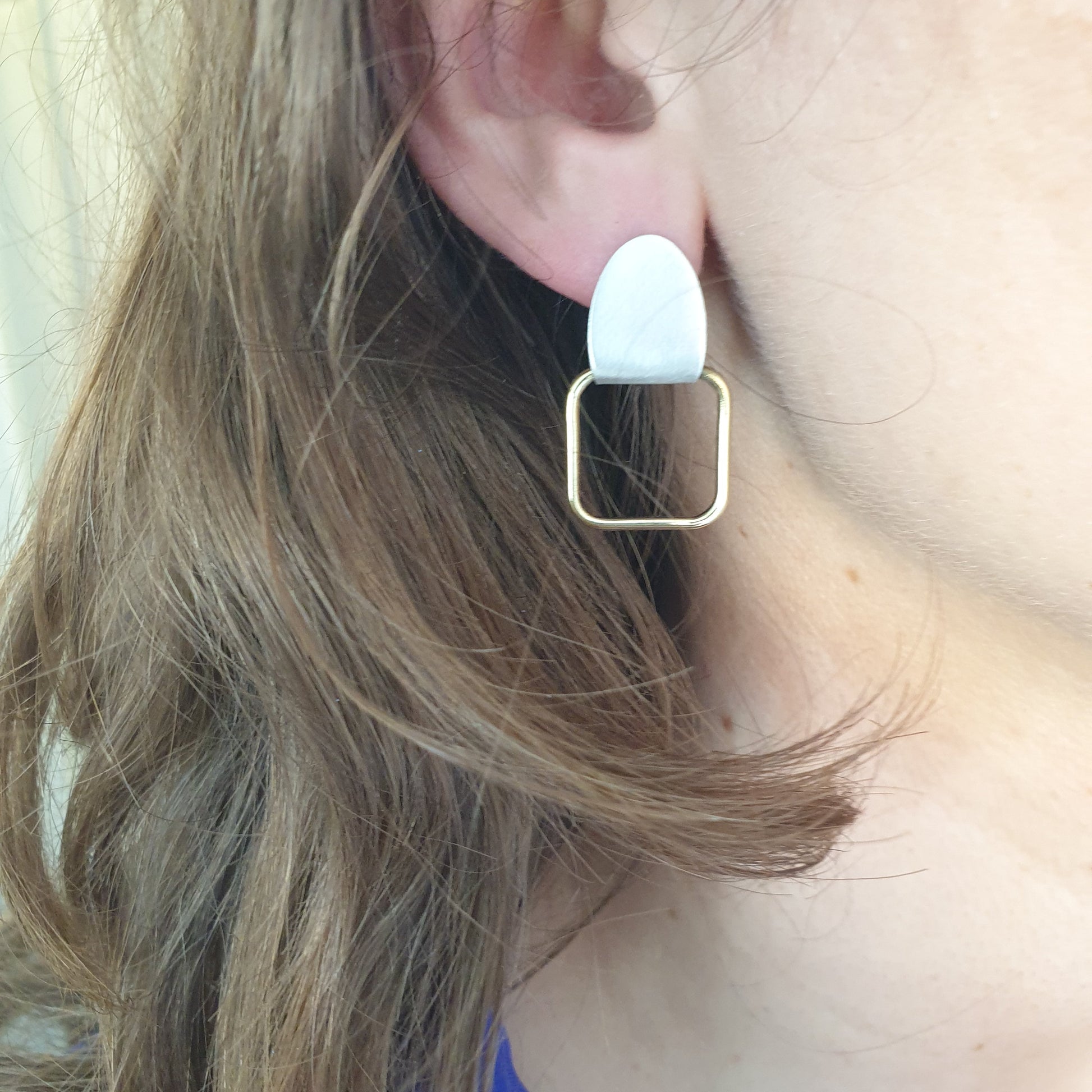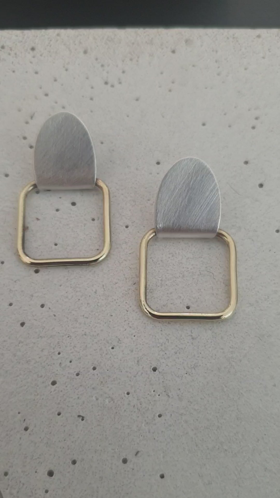 Duality Drops / jednostavne geometrijske viseće naušnice, motivirane kvadratima i točkama, izrađene od srebra, i mjedi, duljine detalja cca 35 mm. Jednostavne su i elegantne, nosive za svaku priliku. Naušnice su ručno izrađene, te je svaki par vrlo sličan, ali nikad u potpunosti identičan.