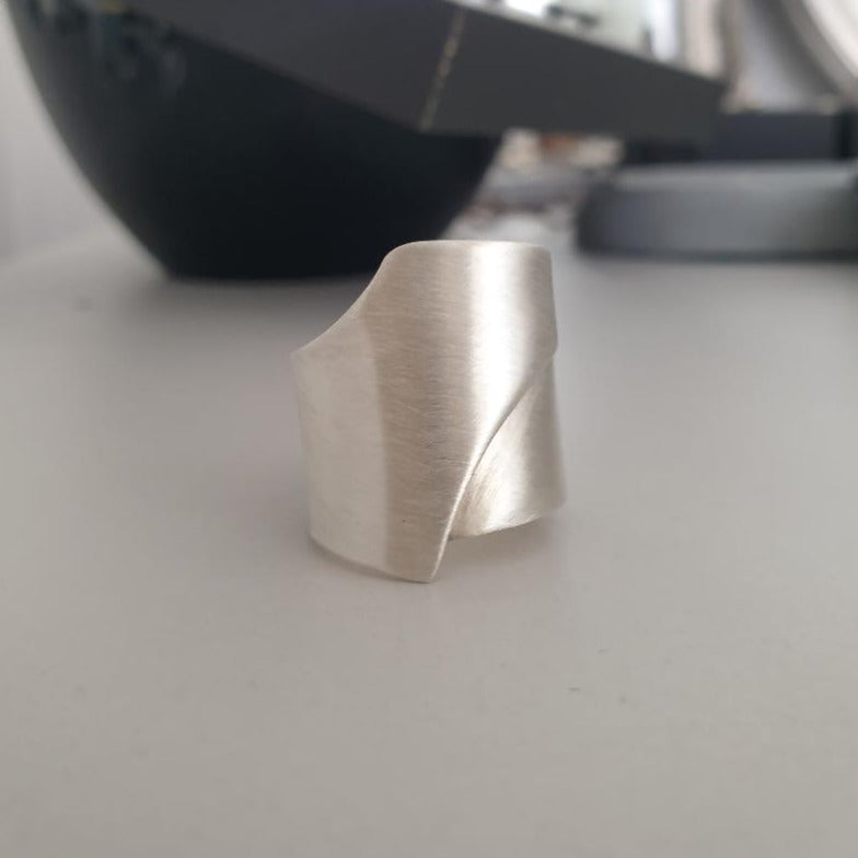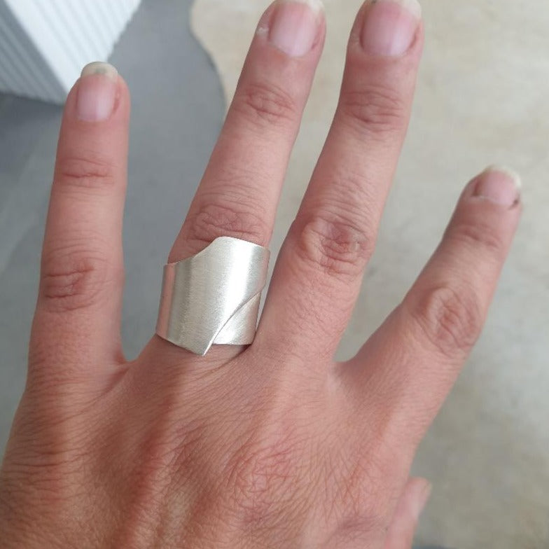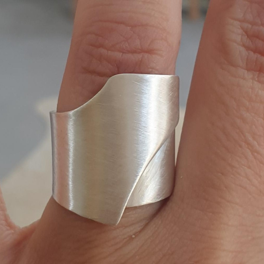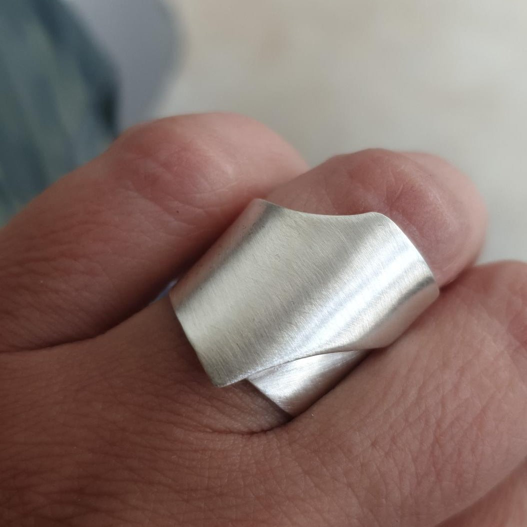 Fragment je jednostavan, ali dominantan prsten izrađen od srebra, s prednje strane dimenzije 22 mm, sa stražnje strane 11 mm. Prstenje s nošenjem postaje svjetlije i sjajnije. Budući da je nakit ručno izrađen, nije identičan prikazanom na fotografiji, već vrlo sličan.