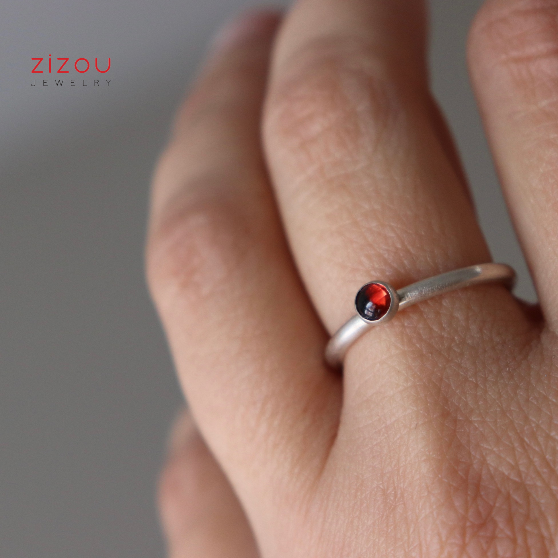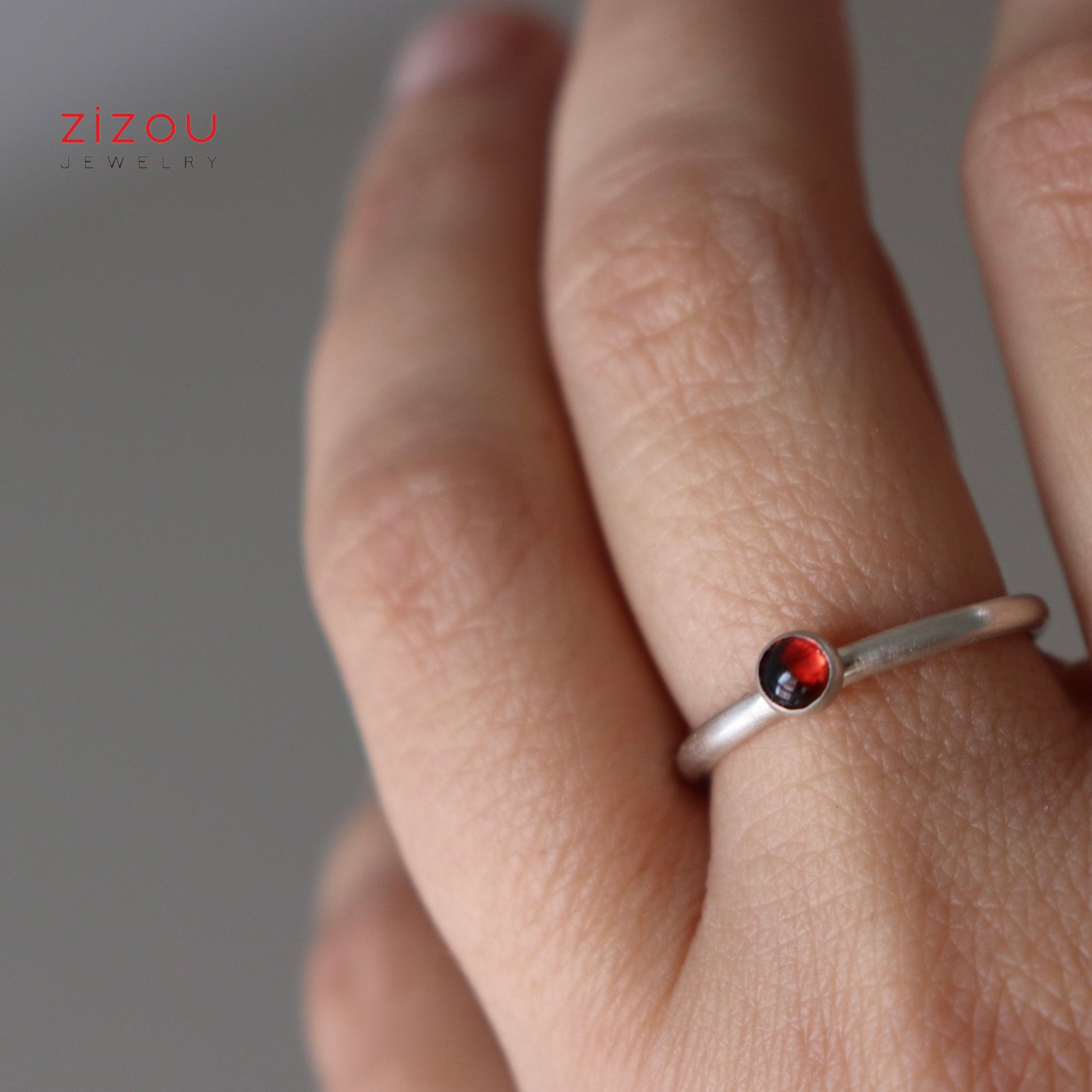 Minimal granat round je vrlo jednostavan prsten izrađen od recikliranog srebra, a krasi ga tamno crveni kamen granat. Prstenje s nošenjem postaje svjetlije i sjajnije. Budući da je nakit ručno izrađen, nije identičan prikazanom na fotografiji, već vrlo sličan.