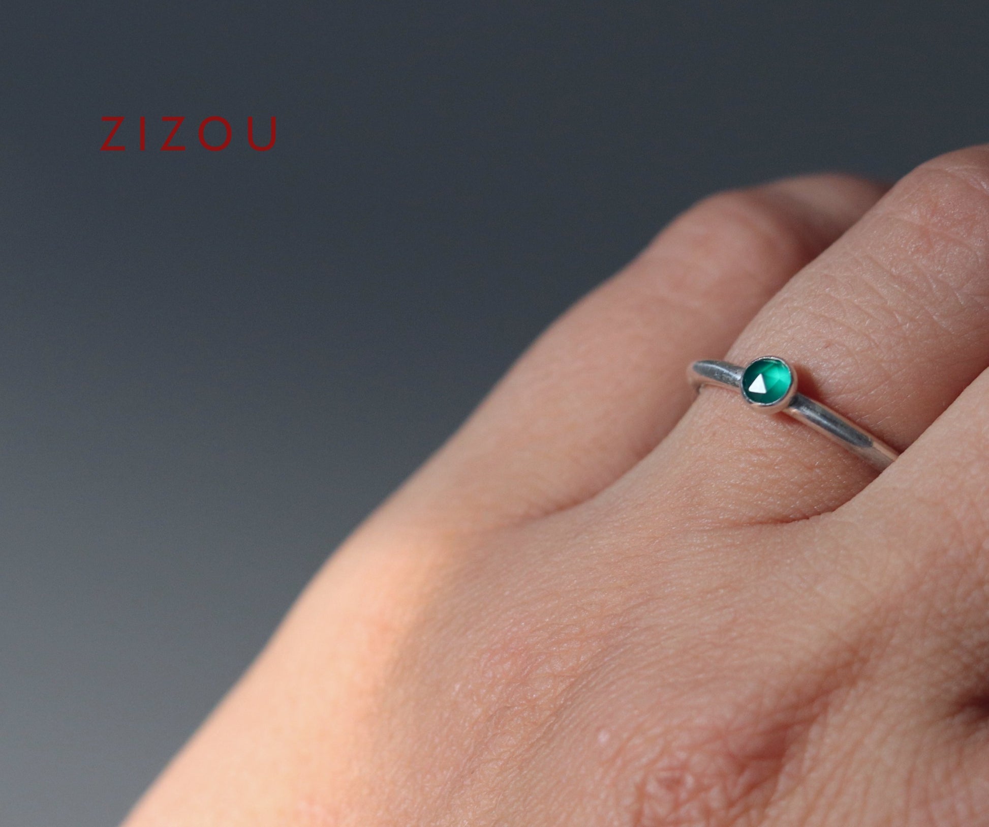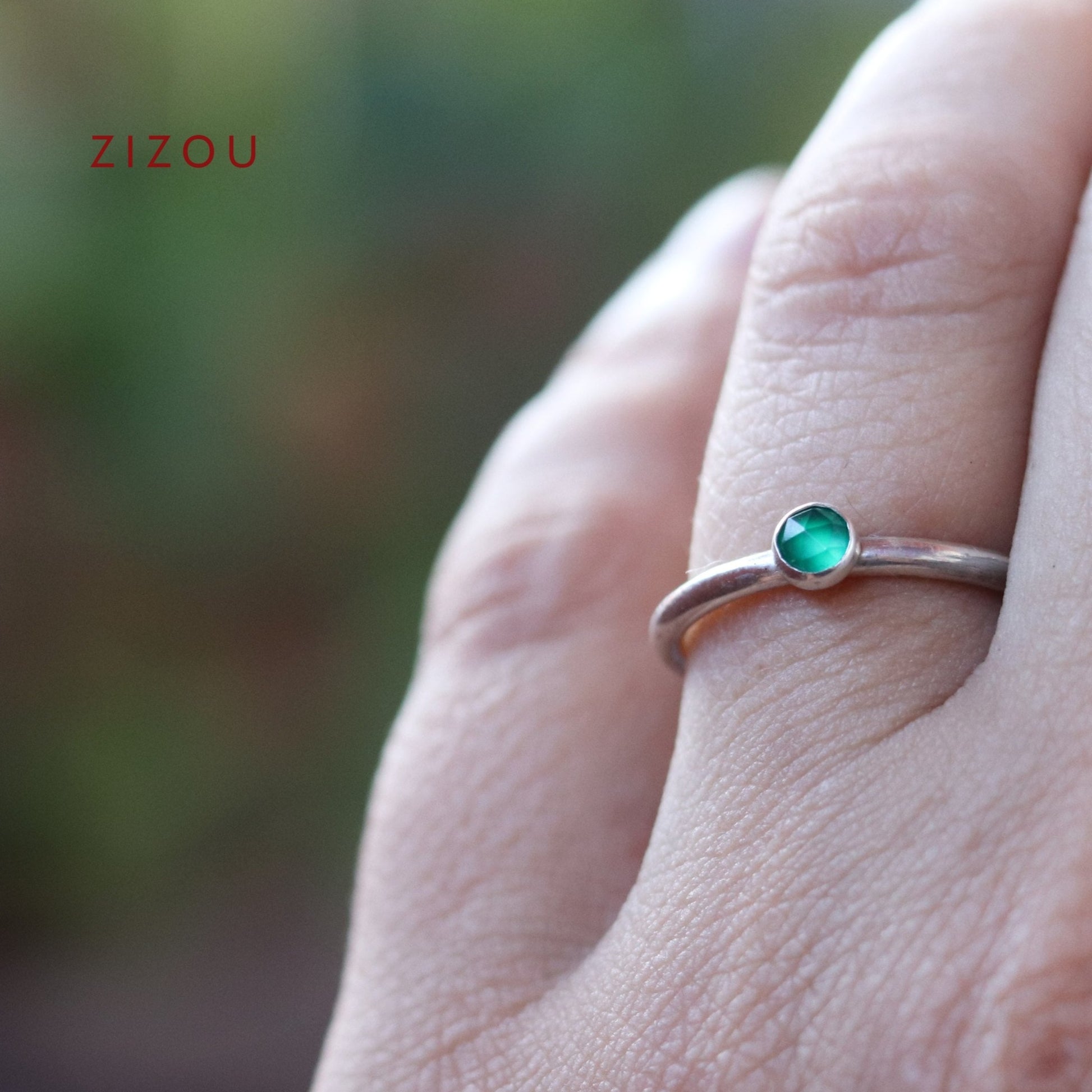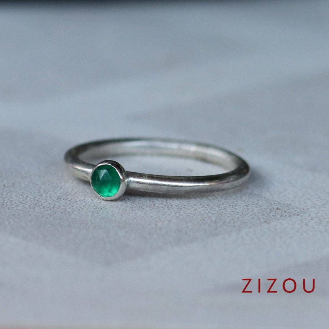 Minimal zeleni onyx round je vrlo jednostavan prsten izrađen od recikliranog srebra, a krasi ga zeleni onyx kamen. Prstenje s nošenjem postaje svjetlije i sjajnije. Budući da je nakit ručno izrađen, nije identičan prikazanom na fotografiji, već vrlo sličan.