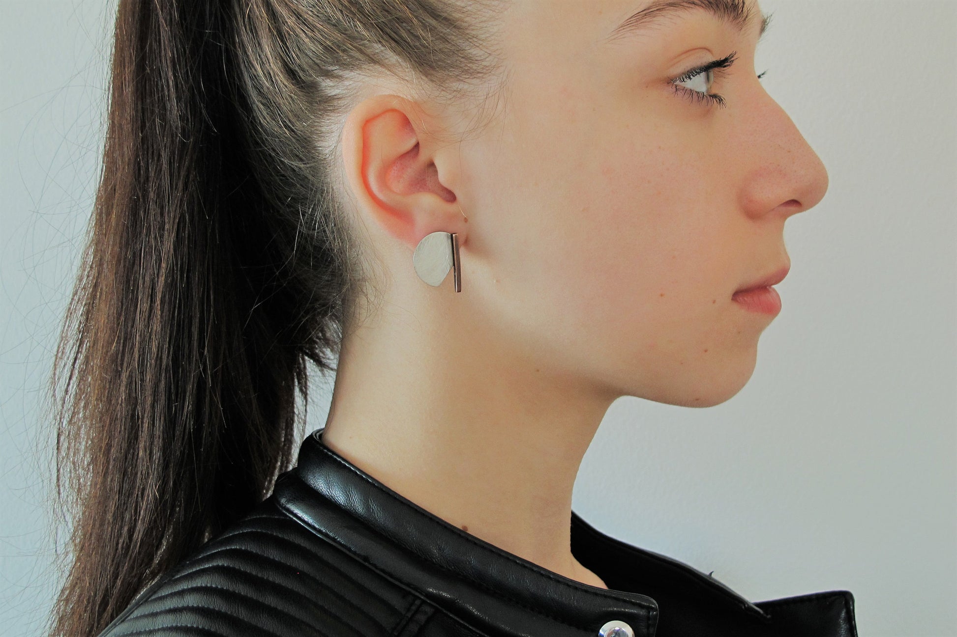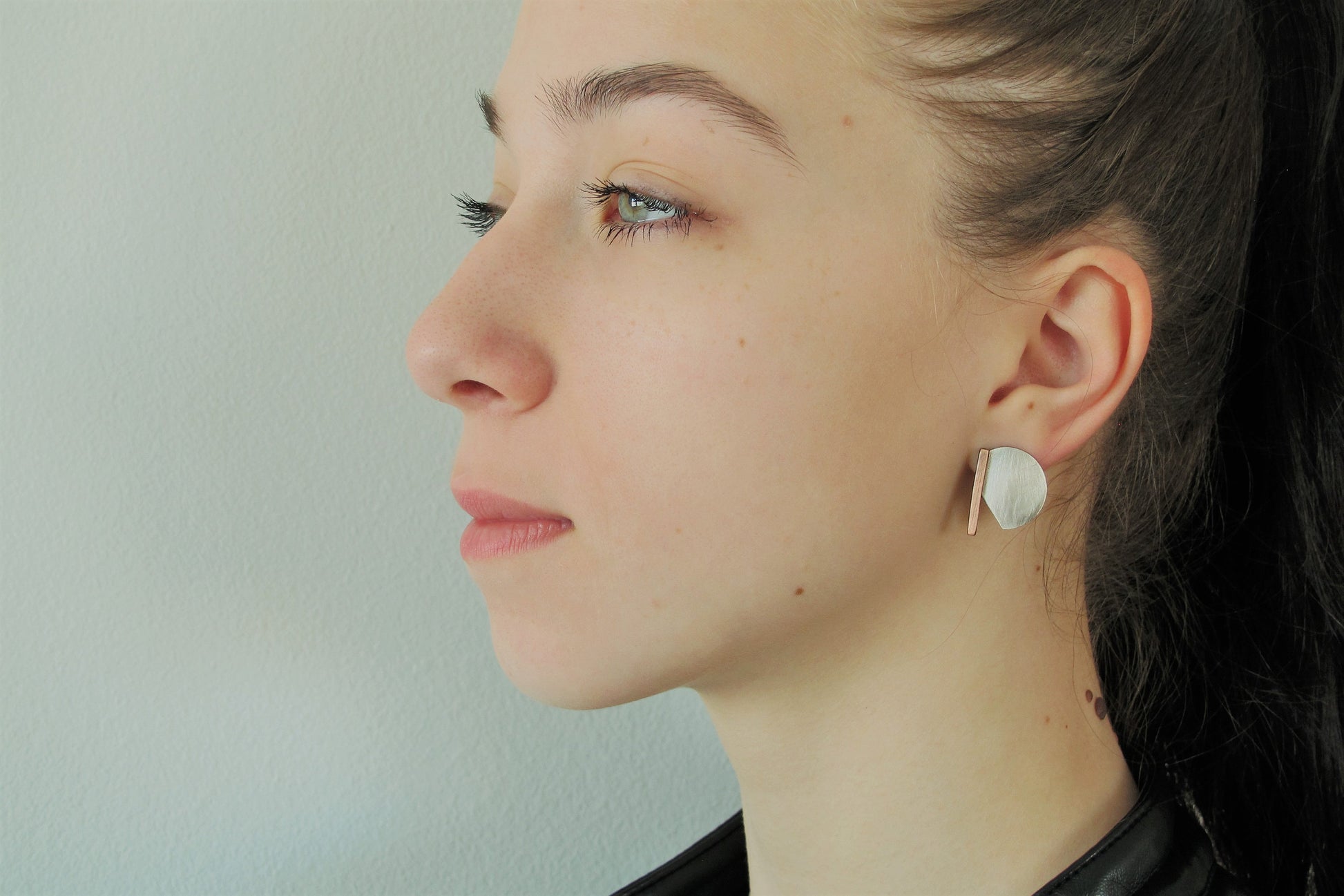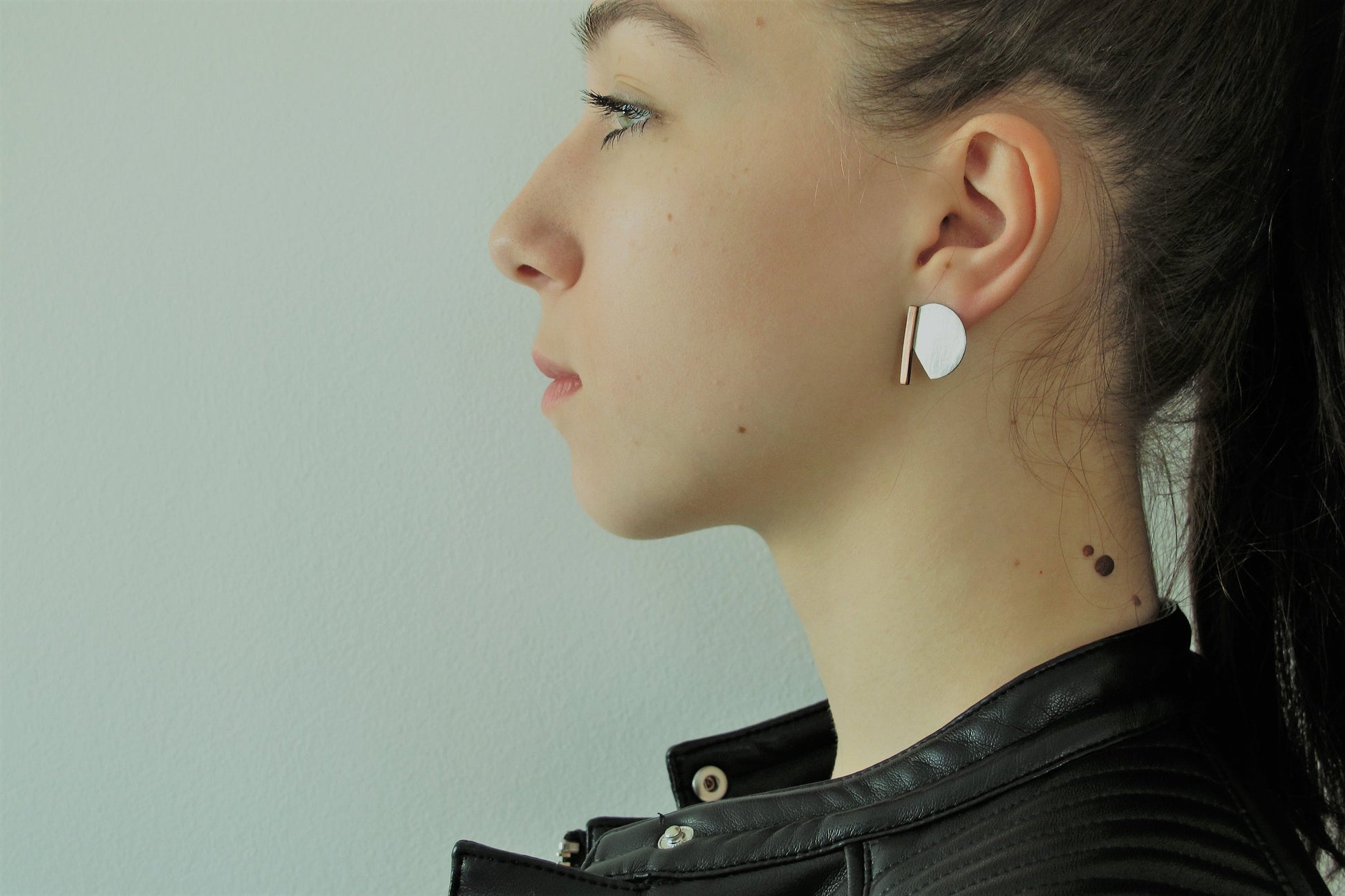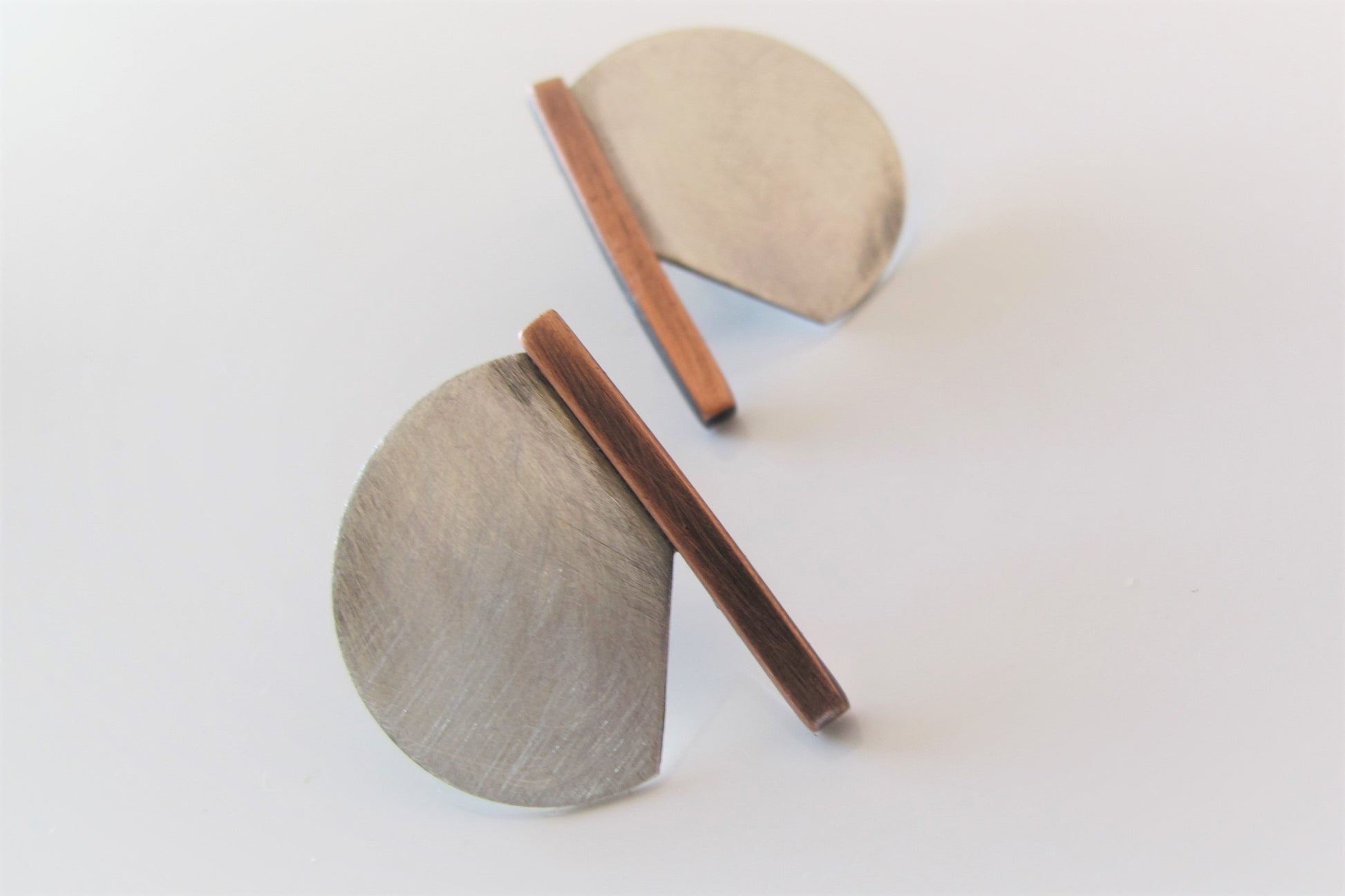 NO mix metala naušnice dio su jedinstvene kolekcije Geometrija. Kolekcija Geometrija je inspirirana naravno geometrijskim oblicima, a čine ju brojni modeli prstenja, naušnica, ogrlica i narukvica, koje rado birate od prvog dana.. Preporučam ih u kombinaciji s prstenom Fragment bakar.