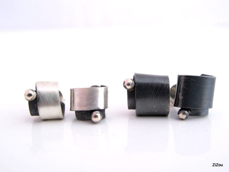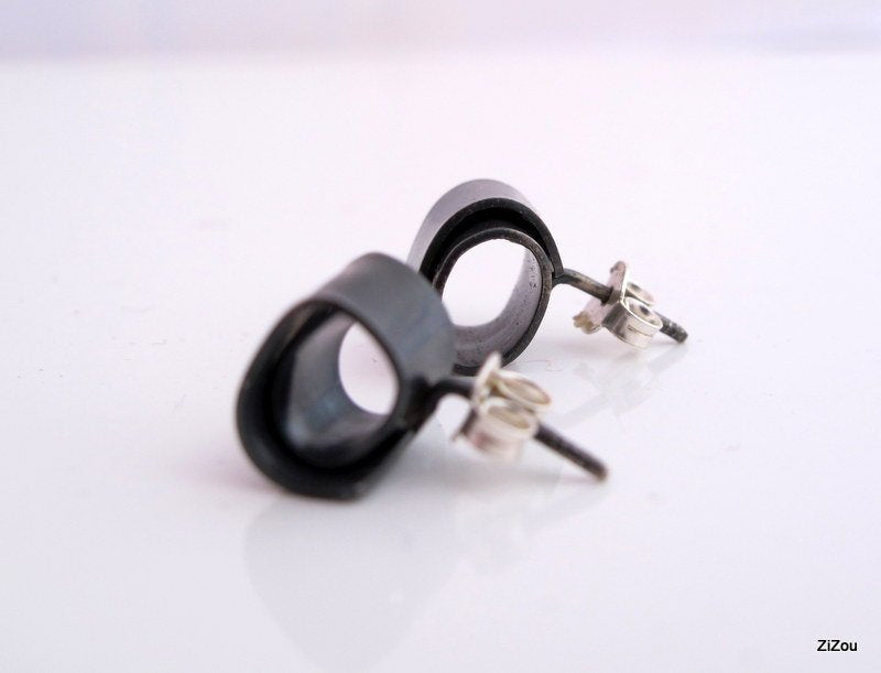 SWRL Black su jednostavne naušnice na leptirić izrađene od srebra, patinirane, dimenzije 10-11 mm. Budući da su ručno izrađene, nisu identične prikazanom na fotografiji, već vrlo slične. S nošenjem će patina po rubovima postati svjetlija.