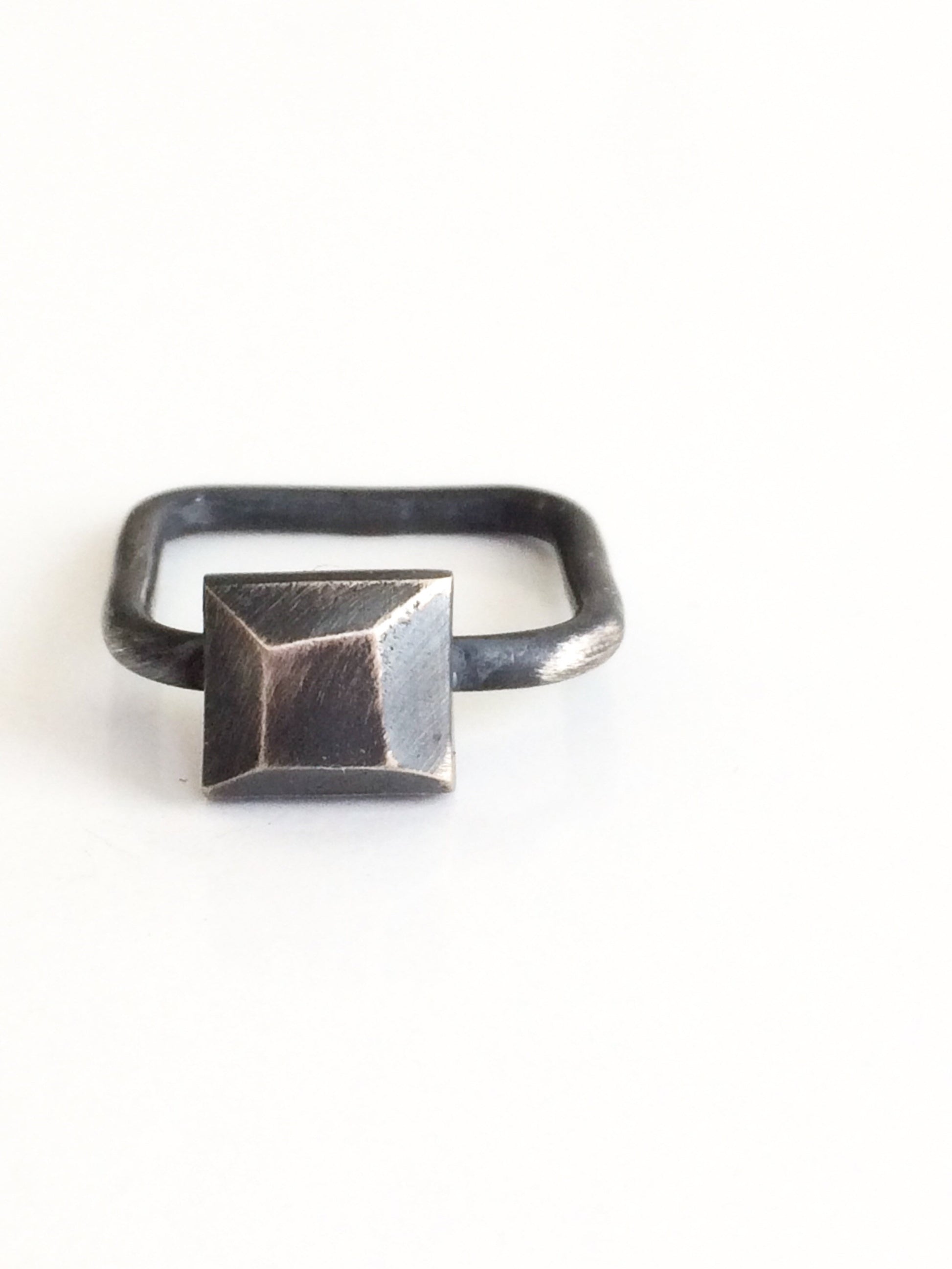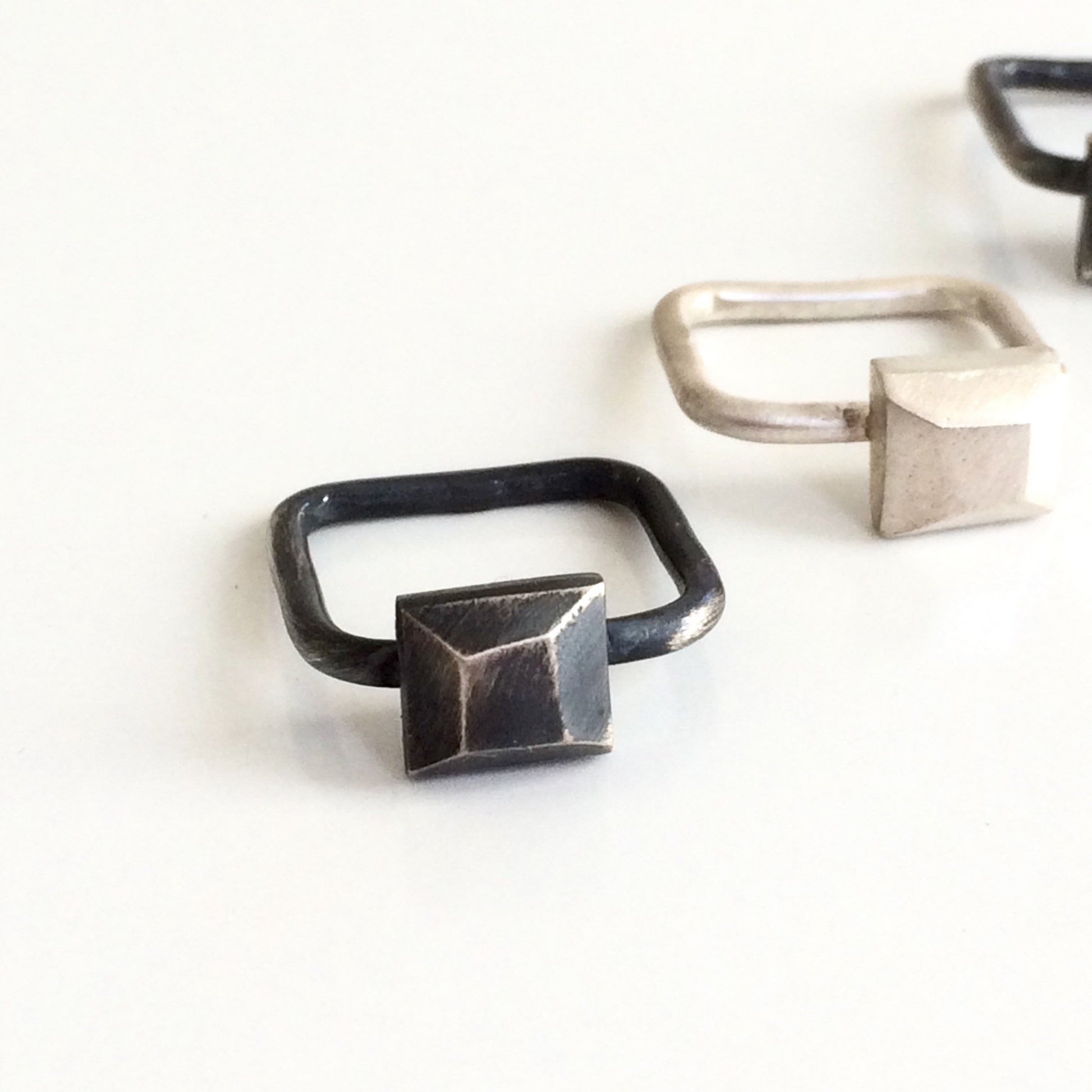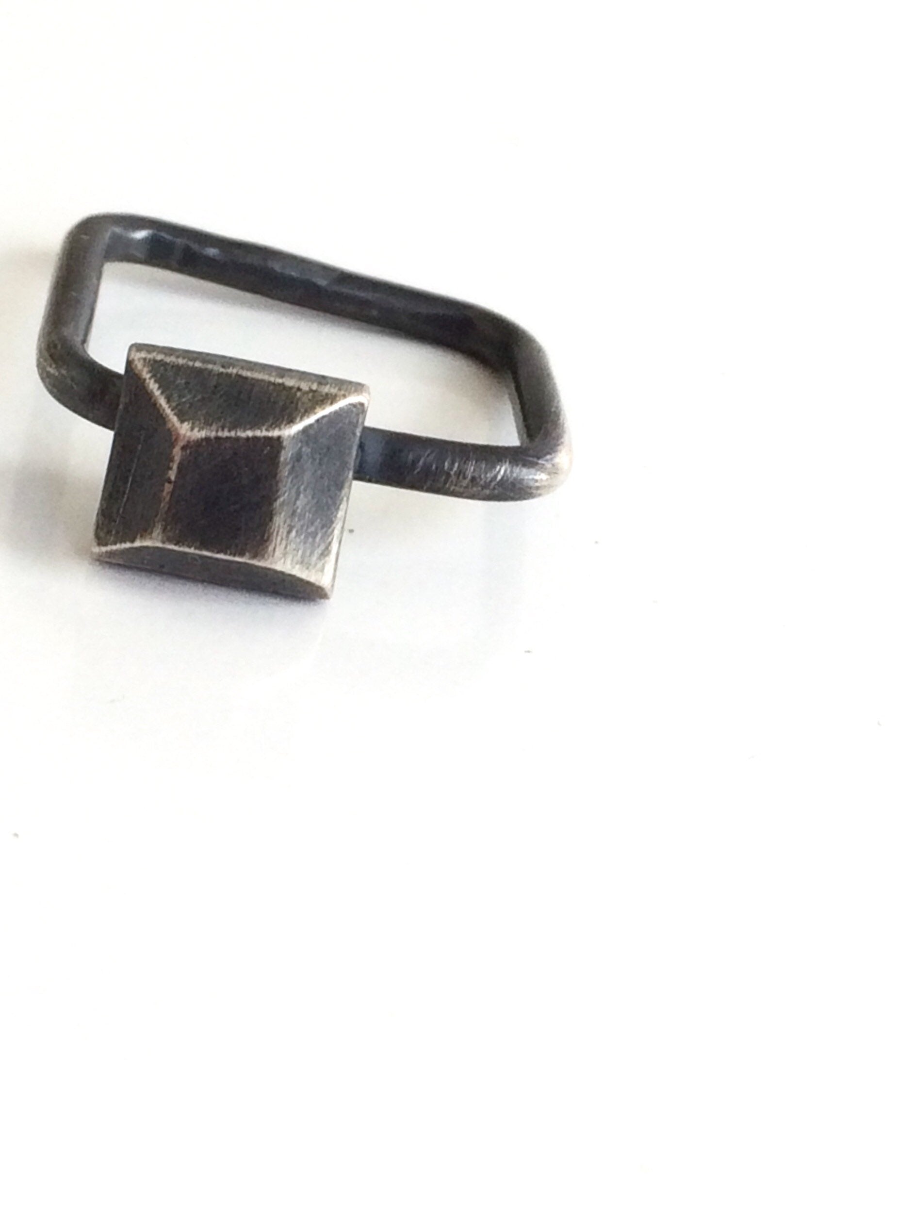 Prsten Kocka u dimenziji je izrađen od recikliranog srebra, a možete ga izabrati kao čisti srebrni ili kao dodatno patiniran. Patina s vremenom postaje svjetlija i sjajnija. Budući da je nakit ručno izrađen, nije identičan prikazanom na fotografiji, već vrlo sličan.