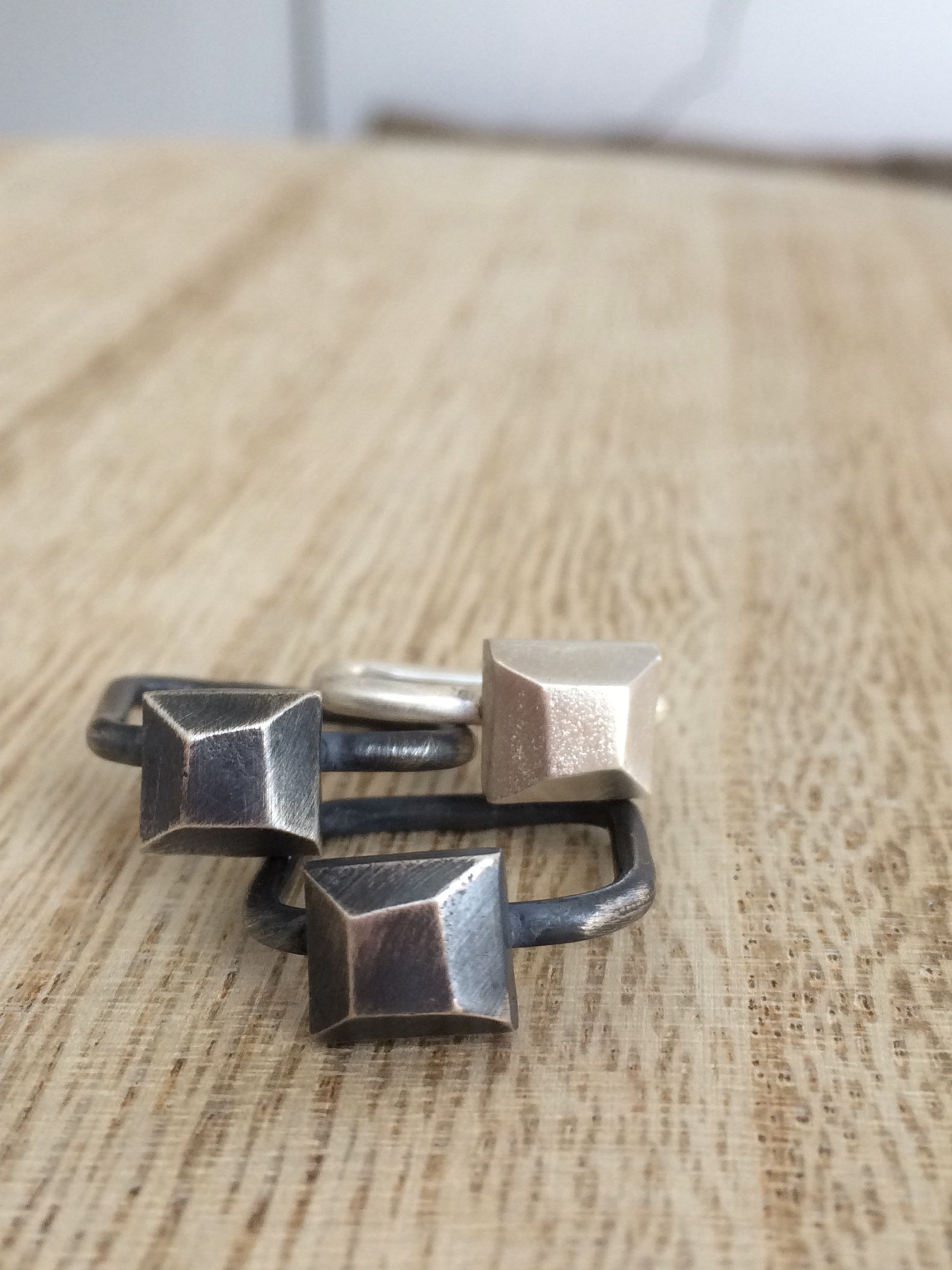 Kocka u dimenziji prsten je dio jedinstvene kolekcije Geometrija. Kolekcija Geometrija je inspirirana naravno geometrijskim oblicima, a čine ju brojni modeli prstenja, naušnica, ogrlica i narukvica, koje rado birate od prvog dana.. Prsten Kocka u dimenziji možete nositi u svim prilikama, a preporučam ga u kombinaciji s naušnicama Kvadrati ili Nuggets i narukvicom Kvadrati.
