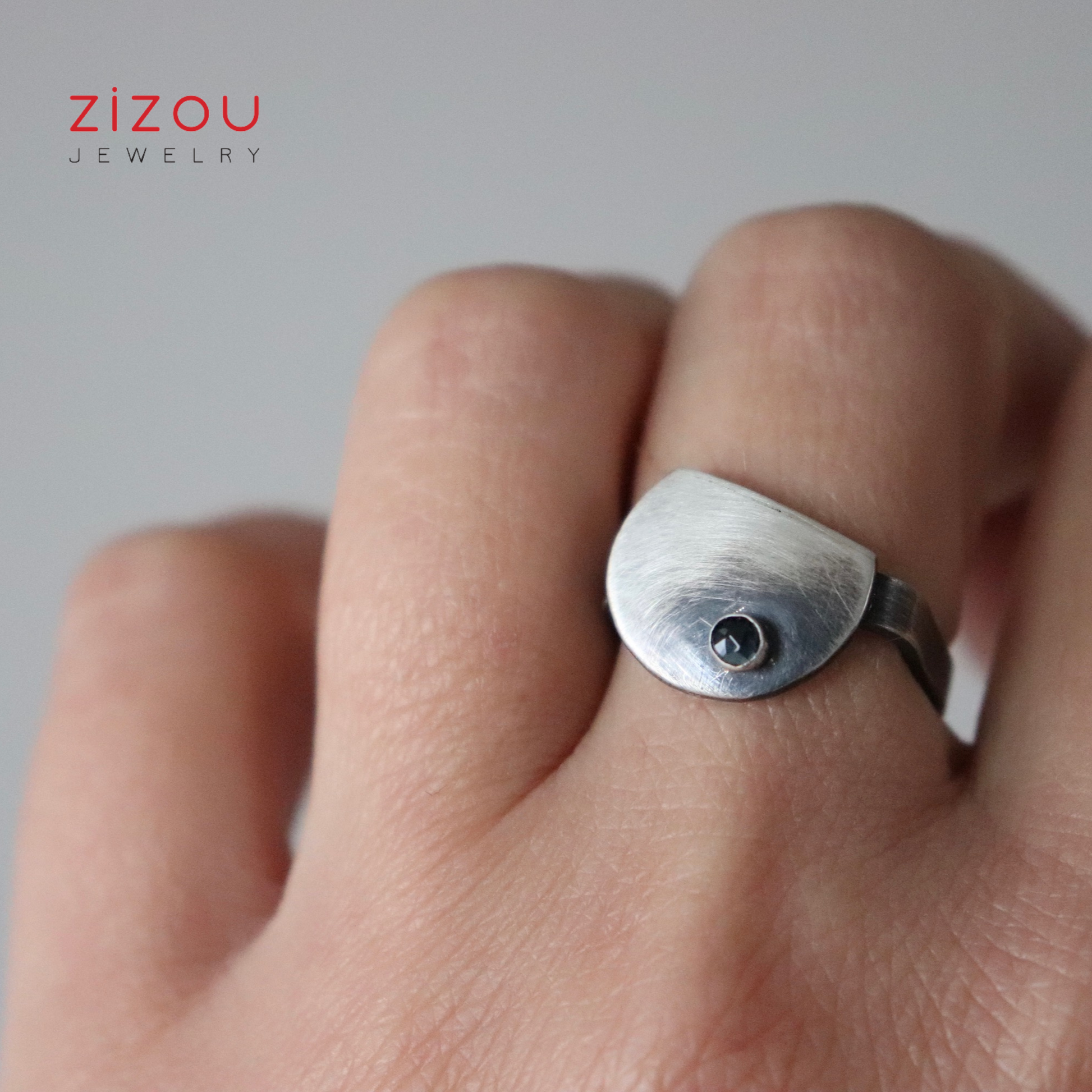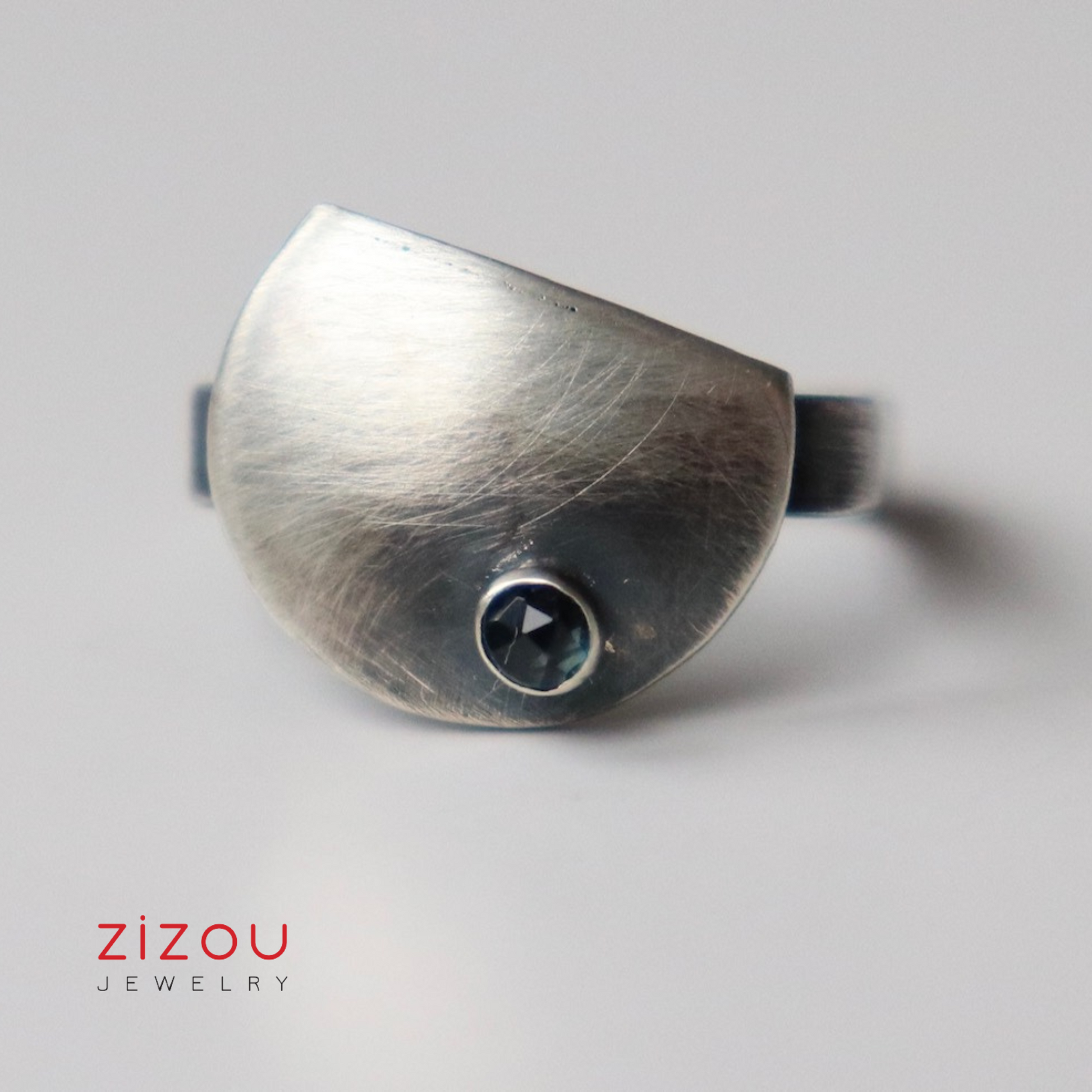 The Moon topaz prsten izrađen je od recikliranog srebra, te dodatno patiniran. Krasi ga predivni poludragi kamen plavi topaz. Vjeruje se da topaz duguje svoju boju nebu, a dugo se vjerovalo da pomaže u očuvanju ljepote, mladosti i očuvanju topline obiteljskog ognjišta.. da donosi harmoniju.. Neka i nama The Moon topaz prsten donese ljepotu i harmoniju neba.. Duljina prstena na najširem dijelu iznosi 22 mm, a straga 5 mm. Prstenje s nošenjem postaje svjetlije i sjajnije. Budući da je nakit ručno izrađen, nije identičan prikazanom na fotografiji, već vrlo sličan.